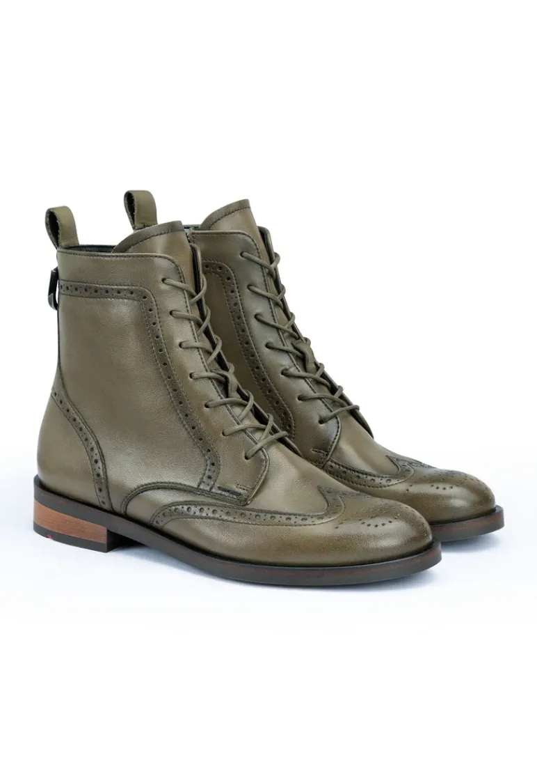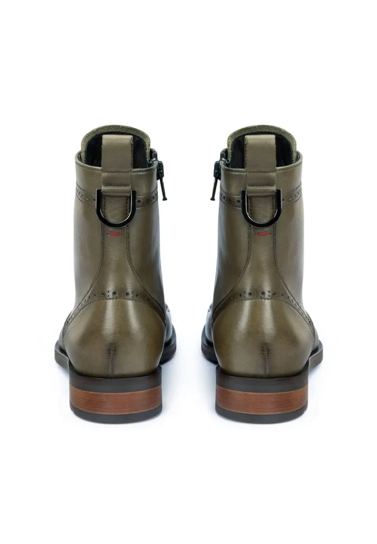 The LLOYD boots made with green smooth leather feature a sporty design. In these shoes, a secure fit with lace fastening is a given. A flexible rubber sole is used. This cushions the impact when walking while the leather of the inner sole offers optimal heat regulation. Thanks to the low block heel the shoes offer secure footing and permit comfortable everyday wear. The zip fastening as well as the soft smooth leather upper guarantee a classic, elegant appearance and easy and quick fastening. Thanks to the leather and textile lining these shoes are comfortable and breathable.