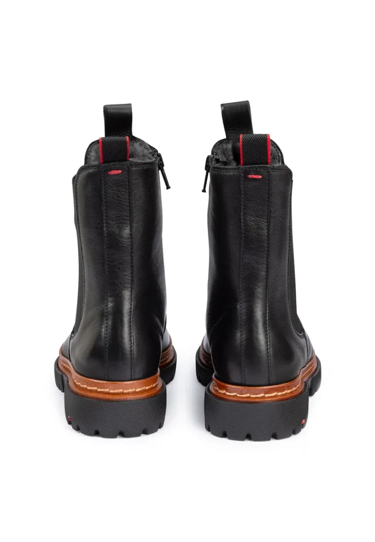 The LLOYD boot made from smooth black leather impresses with its durable and shock-absorbing sole. The ankle boots promise a versatile look that can be combined in many ways. The non-slip rubber sole provides ideal cushioning when walking. The lambskin insole provides a warm interior. Thanks to the flat block heel, these boots offer a secure foothold for everyday wear. The zipper and soft, smooth leather ensure an elegant look and easy closure. The lambskin-lined ankle boots are temperature-regulating and keep feet warm even on colder days.n