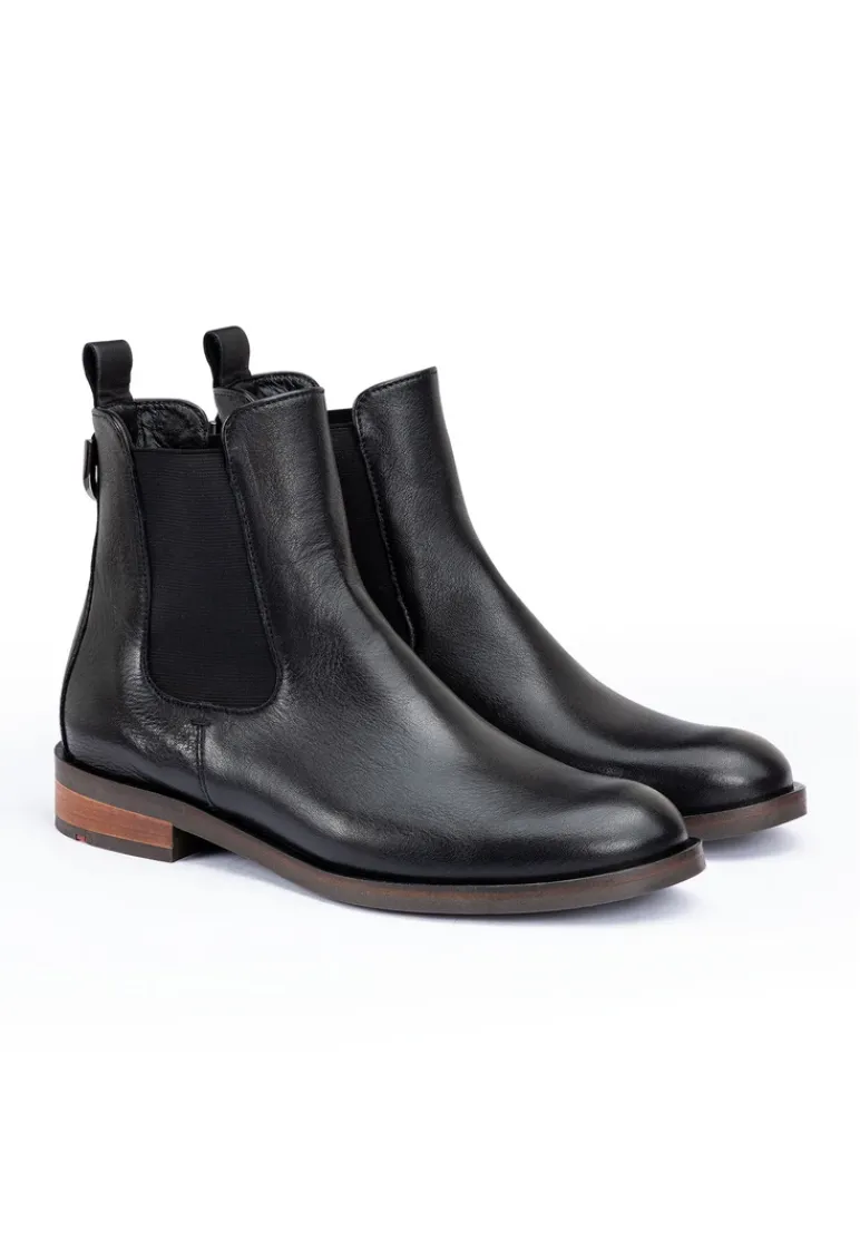 LLOYD presents the boots: designed with black smooth leather, the shoes boast a fashionable design. The shoes are ideal for a variety of outfit combinations as well as easy slipping-into. A non-slip rubber sole is utilized. This cushions the impact when walking while the leather of the inner sole offers good heat regulation. The shoes offer secure footing and allow comfortable everyday wear by the low block heel. The elasticated band and the soft smooth leather upper guarantee a classic, elegant look and quick putting on and taking off. Thanks to the leather and textile lining these shoes are comfortable and breathable.