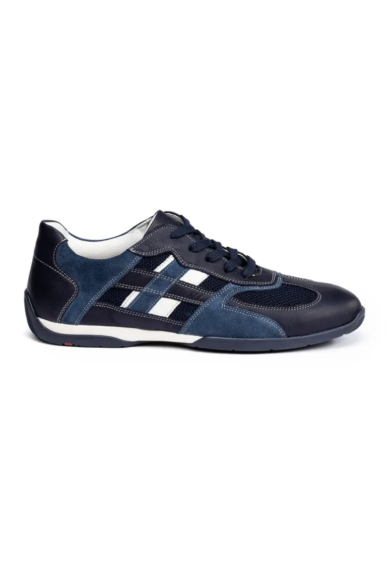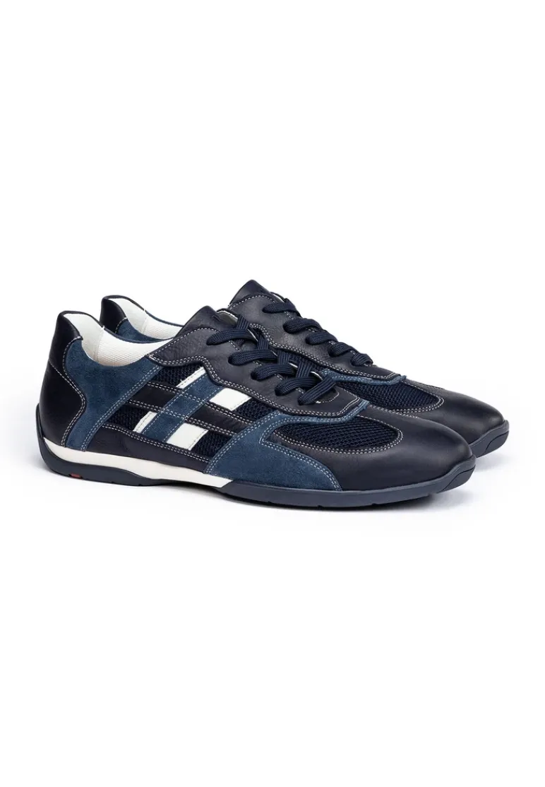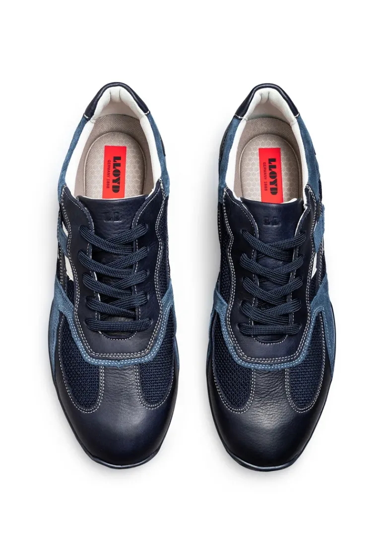 LLOYD presents the »BALDWIN« trainers: designed with blue smooth leather, the shoes boast a pleasant wearing comfort. A casual look is guaranteed in these shoes. Their wear-resistant rubber sole cushions the impact when walking perfectly. Additionally, the synthetic of the inner sole ensures lightness in wear. The shoes’ soft smooth leather upper and laces guarantee a classic, elegant look and a firm, secure grip. By use of the Mesh lining these shoes are breathable and comfortable. With the Variofootbed, the model is perfectly suited for inlays thanks to the removable insole.