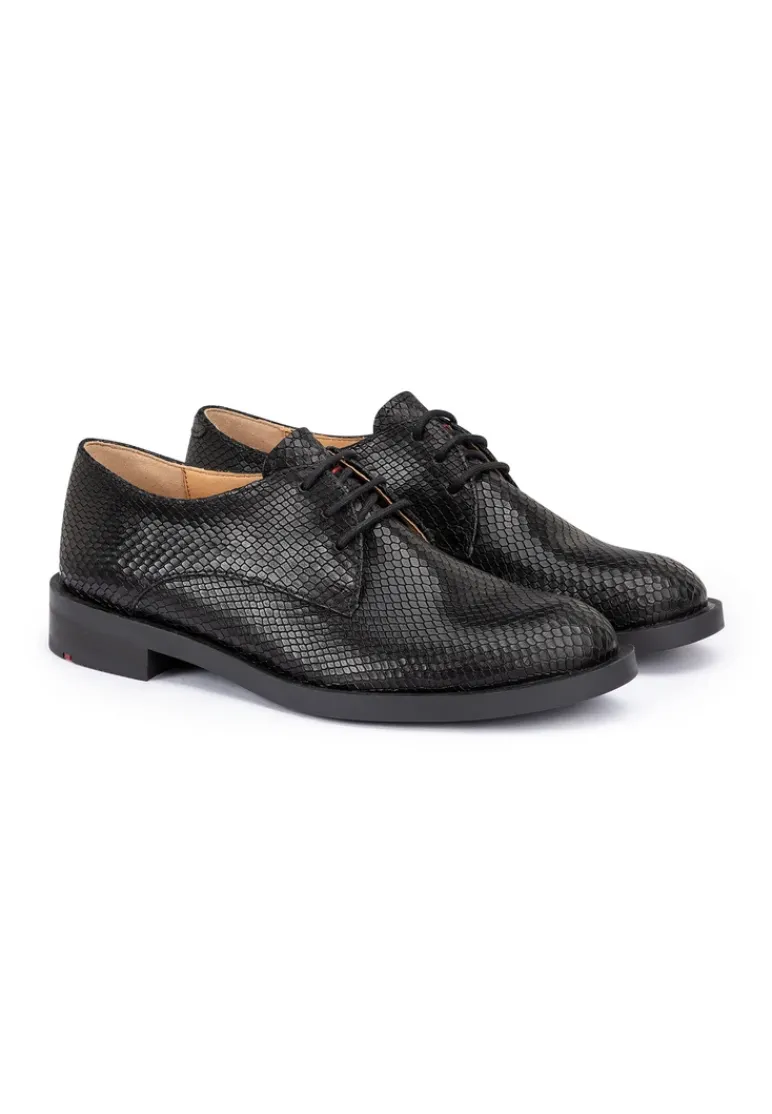 The LLOYD lace-up shoes crafted from black leather feature an on-trend statement upper material. A classic look coupled with an elegant appearance is guaranteed in these shoes. Their non-slip rubber sole cushions the impact when walking perfectly. On top of that, the leather of the inner sole provides optimal heat regulation. Thanks to the low block heel the shoes offer secure footing and allow comfortable daily wear. A firm, secure grip as well as an original look are ensured with the stylish embossed leather upper and the laces. Thanks to the leather and textile lining these shoes are comfortable and breathable.
