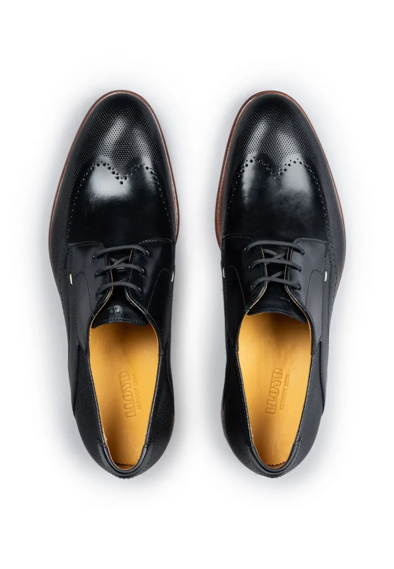 The NASSAU derby shoe from LLOYD comes in stylish black and is made from high-quality smooth leather and embossed leathe…