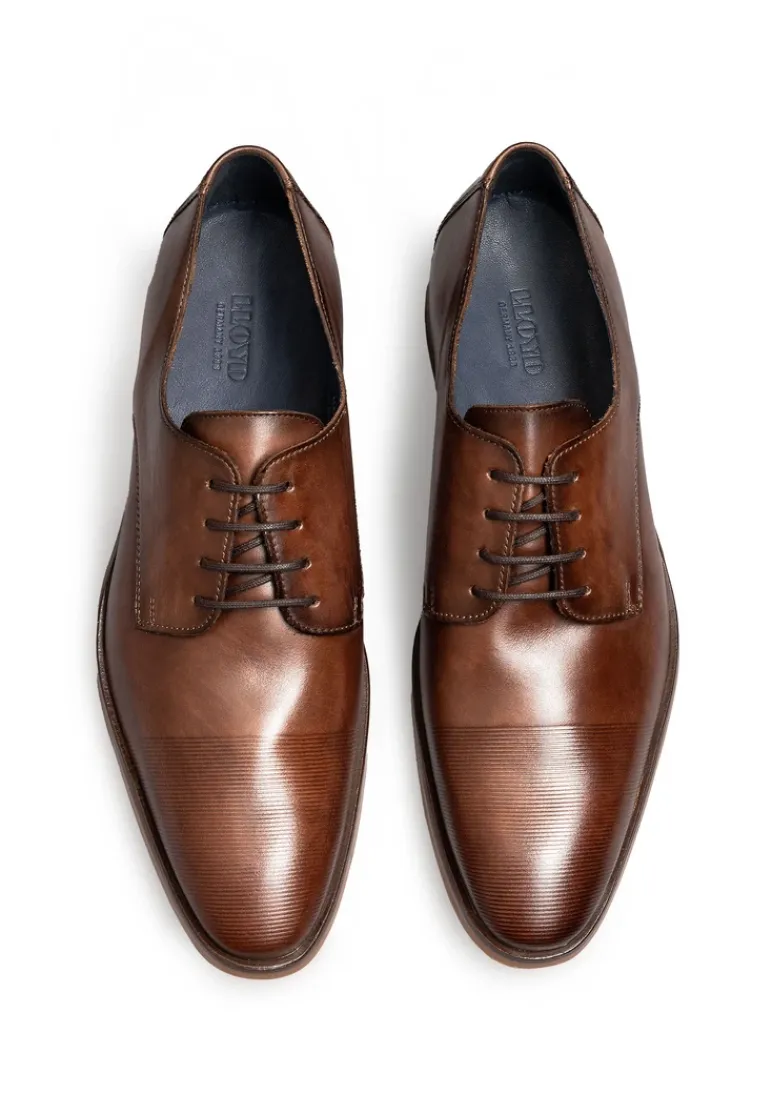 Stand out with the LLOYD derby shoes »OLOT« made from brown smooth leather and a fashionable design. A classic look combined with an elegant appearance is guaranteed in these men’s shoes. A flexible rubber sole cushions the impact when walking and the leather of the inner sole offers optimal heat regulation. The classic, almond toe gives the appearance of narrow feet. The lace-up shoes’ stylish leather upper and laces guarantee a modern, high-quality appearance and a firm, secure grip. These shoes are comfortable and breathable by use of the leather and textile lining.