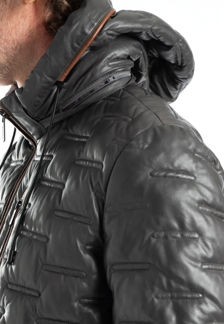 The quilted jacket from LLOYD in sheepskin combines luxurious material with modern functionality.nWith a detachable hoo…