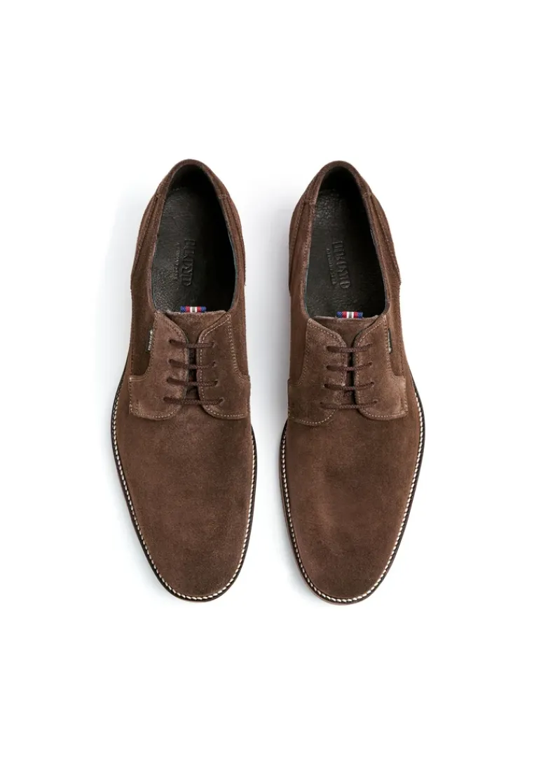 Catch the eye with the LLOYD derby shoes »VICKERS« made from brown rough leather and an all around waterproof and extremely breathable GORE-TEX membrane suited for any weather. A classic look coupled with an elegant appearance is guaranteed in these shoes. A wear-resistant rubber sole cushions the impact when walking and the leather of the inner sole provides optimal heat regulation. The lace-up shoes’ soft rough leather upper and laces ensure a original and high-quality appearance and a firm, secure grip. Thanks to the leather lining these shoes are breathable and comfortable. With this GORE-TEX technology, the model is temperated comfortably guaranteeing a pleasant foot climate.