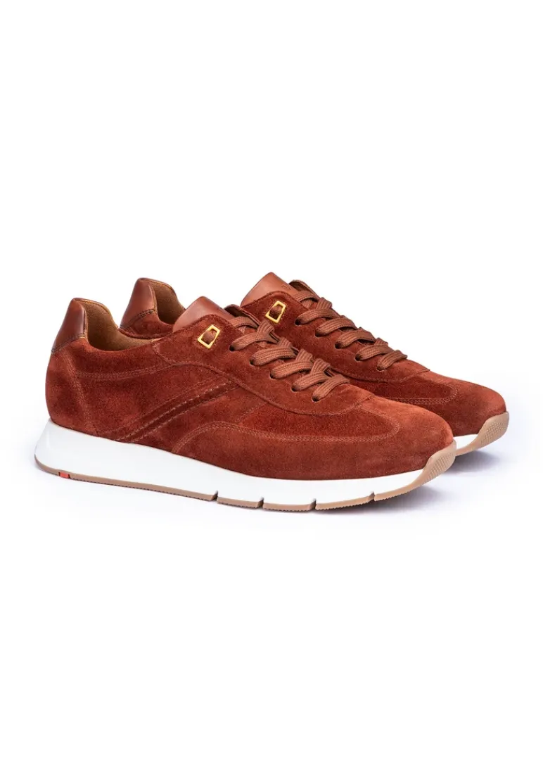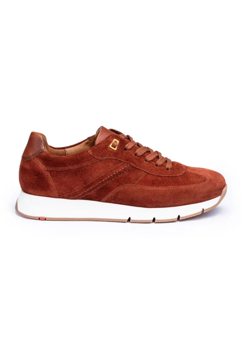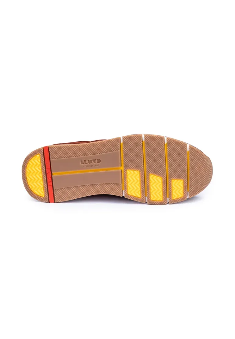Catch the eye with the LLOYD trainers made from red rough leather and an easy-to-clean upper material. The shoes are perfect for a straightforward look. The wear-resistant rubber sole cushions the impact when walking and the synthetic of the inner sole provides lightness in wear. The laces and the soft rough leather upper ensure a original and high-quality look and a firm, secure grip. These shoes are comfortable and breathable by use of the leather and textile lining. The model features a Variofootbed so it is perfectly suited for the use of inlays thanks to the removable insole.