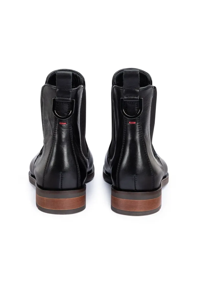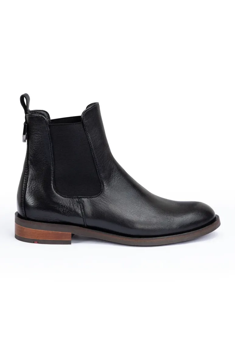 LLOYD presents the boots: designed with black smooth leather, the shoes boast a fashionable design. The shoes are ideal for a variety of outfit combinations as well as easy slipping-into. A non-slip rubber sole is utilized. This cushions the impact when walking while the leather of the inner sole offers good heat regulation. The shoes offer secure footing and allow comfortable everyday wear by the low block heel. The elasticated band and the soft smooth leather upper guarantee a classic, elegant look and quick putting on and taking off. Thanks to the leather and textile lining these shoes are comfortable and breathable.