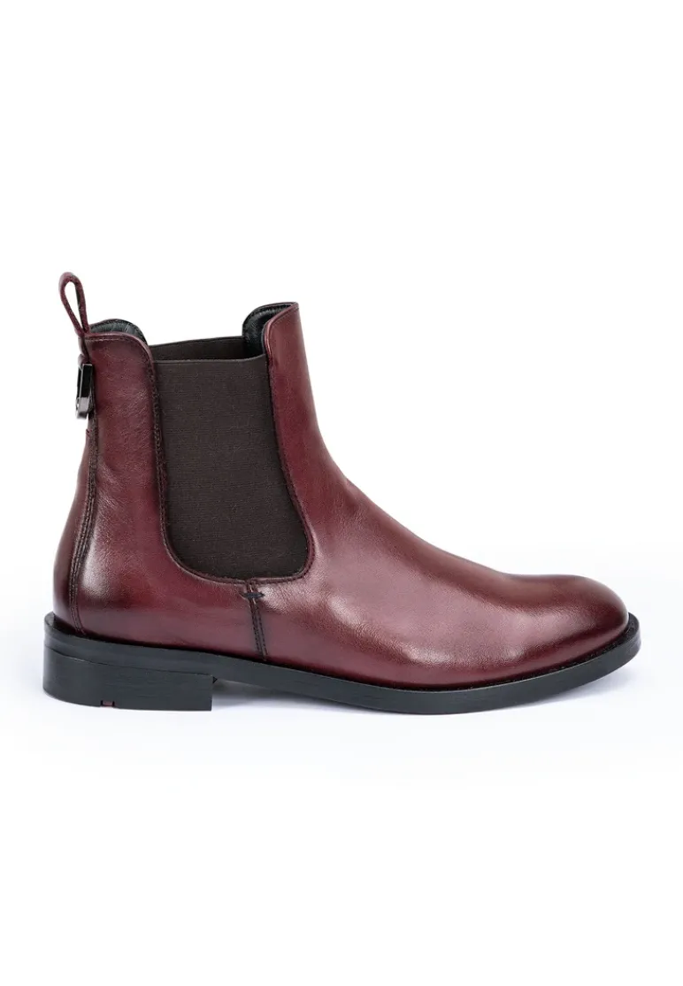 The LLOYD boots crafted from red smooth leather feature a fashionable design. The shoes are perfect for a range of outfit combinations as well as easy slipping-into. A non-slip rubber sole cushions the impact when walking and the leather of the inner sole provides optimal heat regulation. The shoes offer secure footing and allow comfortable everyday wear by the low block heel. Easy putting on and taking off and a classic, elegant appearance are ensured with the soft smooth leather upper and the elasticated band. By use of the leather and textile lining these shoes are comfortable and breathable.