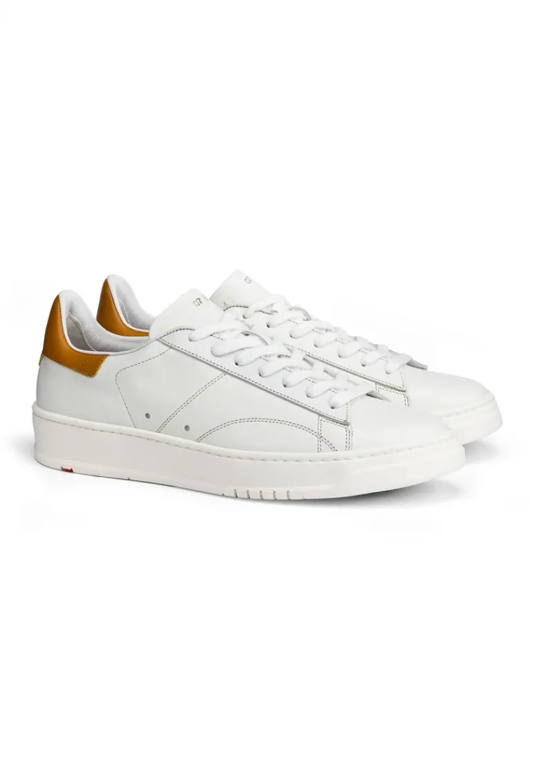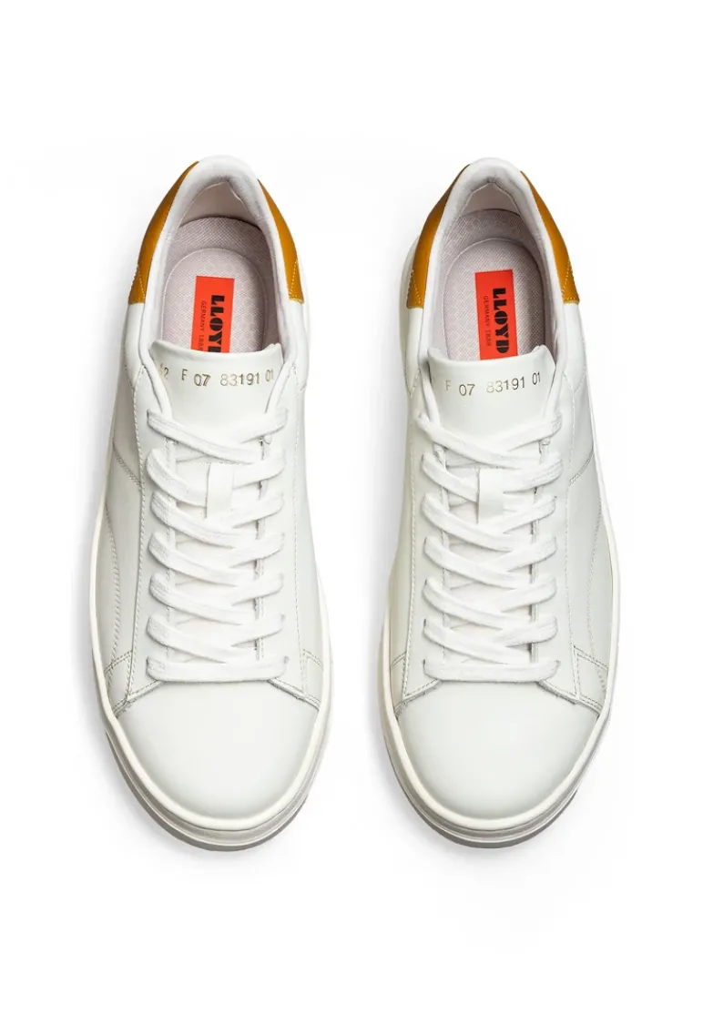 The LLOYD »BARNETT« trainers crafted from white smooth leather feature a classic design. The trainers are ideal for a sporty look. A flexible rubber sole is used. This cushions the impact when walking while the synthetic of the inner sole ensures lightness in wear. A firm, secure grip as well as a classic, elegant look are ensured with the soft smooth leather upper and the laces. The model has a Variofootbed which is perfectly suited for inlays due to the removable insole.