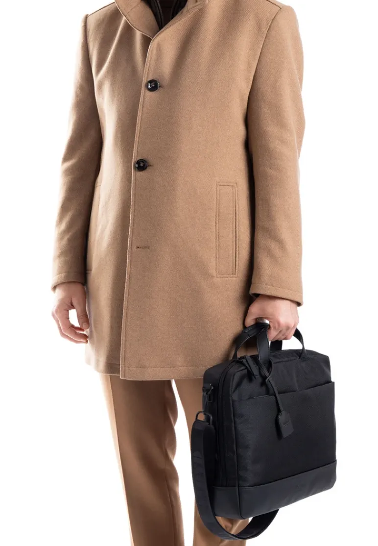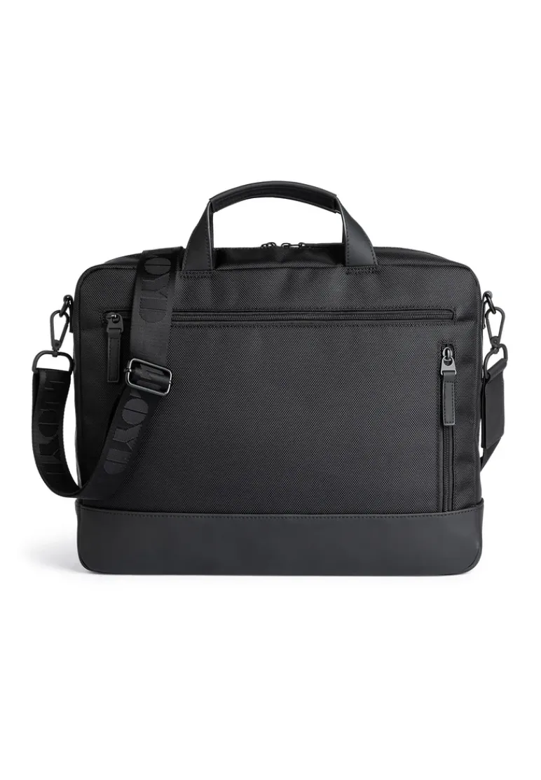 The LLOYD business bag, made from durable nylon fabric, stands out with its functional and elegant design. With dimensions of 38 x 29 x 8 cm, it offers ample space for all essential items. The bottom of the bag is crafted from a special Rains material, providing extra durability and protection.nThanks to the short handle and the detachable, adjustable shoulder strap, the bag is easy to carry. On the back, there is a vertical and a horizontal zippered pocket, which, combined with a trolley handle, ensure maximum flexibility on the go.nThe front of the business bag features a large zippered pocket for quick access to frequently needed items. The main compartment is equipped with a two-way zipper and includes a laptop compartment, four slip pockets, two pen holders, and an additional zippered pocket inside. This ensures all your important documents and work materials are always well-organized and within reach.