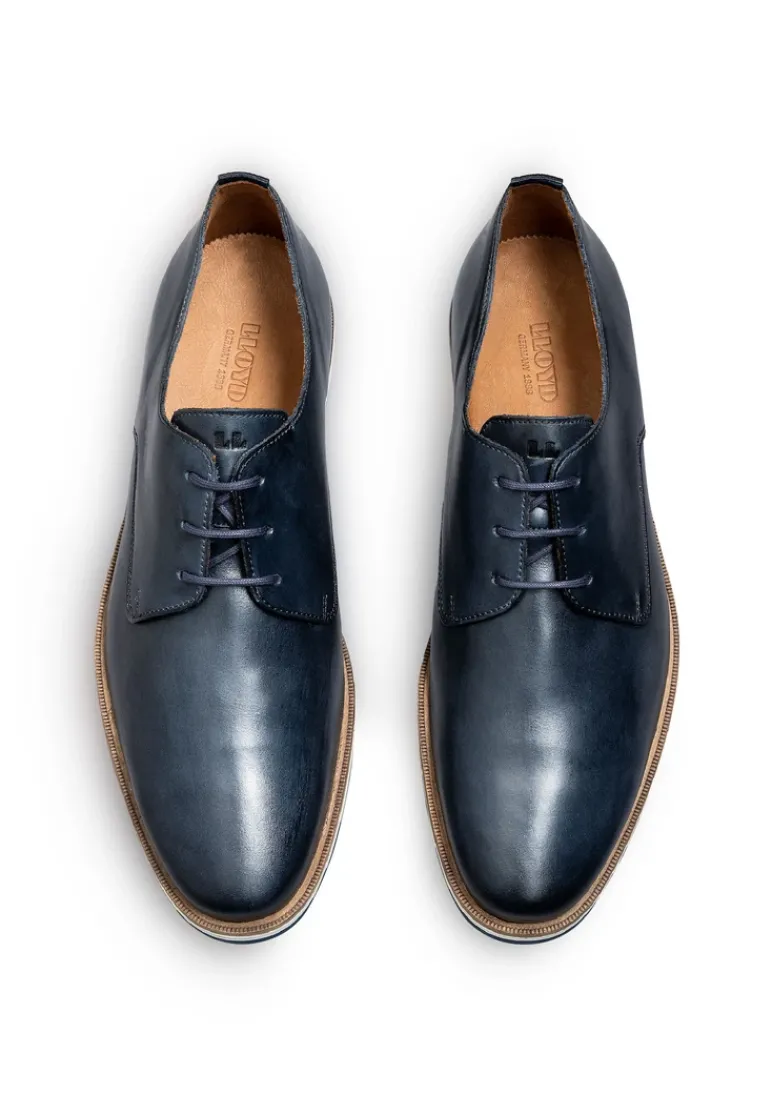 LLOYD presents the »DAKIN« derby shoes: designed with blue smooth leather, the shoes boast a classic design. In these lace-up shoes, a classic and elegant look is a given. A flexible rubber sole is utilized. This cushions the impact when walking while the leather of the inner sole offers good heat regulation. The shoes’ soft smooth leather upper and laces guarantee a classic, elegant appearance and a firm, secure grip. By use of the leather and textile lining these men’s shoes, men’s lace-up shoes are comfortable and breathable.