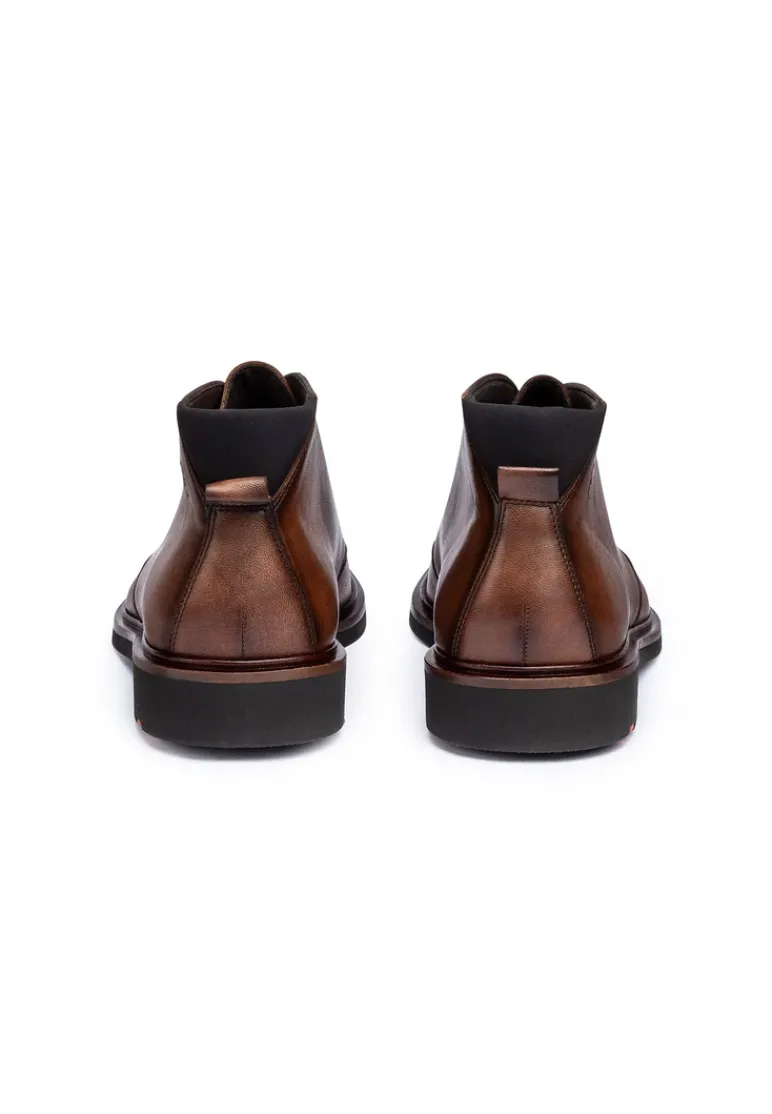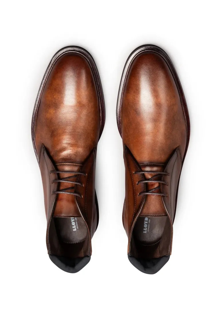 The LLOYD DAXIN ankle boot combines elegant design with maximum comfort. The upper is made from high-quality smooth leather in classic brown for a stylish look, ideal for business occasions. The inner lining is made from 60% leather and 40% textile and offers a comfortable fit. Thanks to the removable leather sole and the lightweight Extralight® rubber sole, you will experience comfort all day long. The round toe and block heel give the shoe a timeless silhouette, while the laces ensure a secure fit. A sophisticated men’s sneaker that perfectly combines business and comfort.