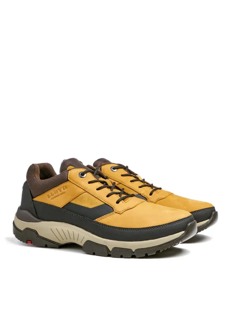 Make a statement with the LLOYD trainers »EBE« made from brown rough leather and a remarkably light sole. The shoes are perfect for a sporty look. A non-slip rubber sole is used. This cushions the impact when walking. The laces and the leather and textile upper guarantee a modern, sporty appearance and a firm, secure grip. With the Variofootbed, the model is perfectly suited for inlays due to the removable insole.
