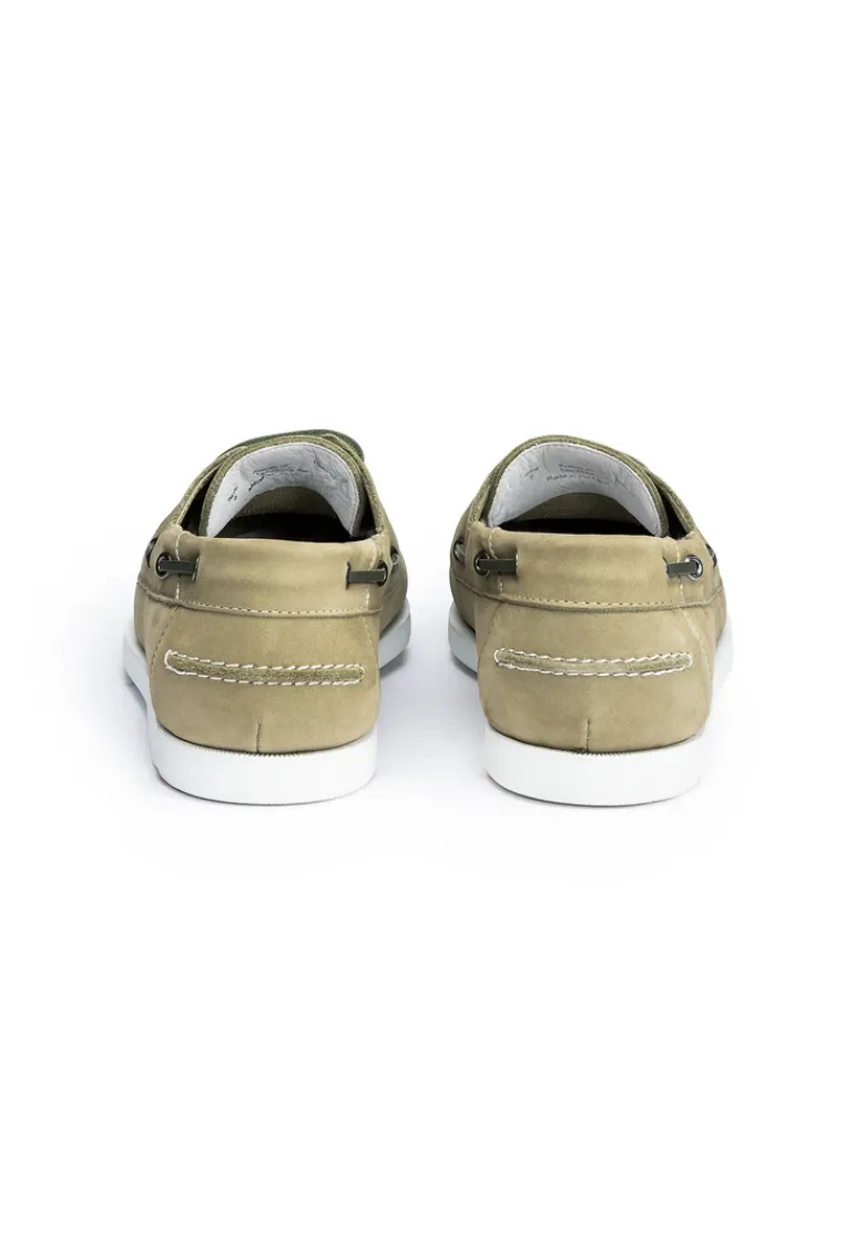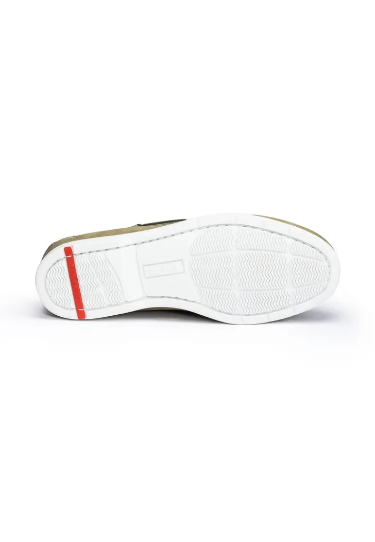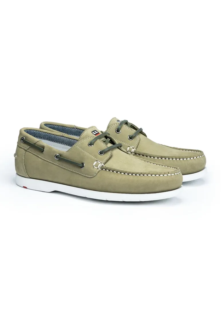 LLOYD presents the »ELDIR« boat shoes: crafted from green rough leather, the shoes boast comfortable wear. The lace-up shoes persuade with effortless handling by simply sliding into them. A flexible rubber sole is used. This cushions the impact when walking while the leather of the inner sole offers good heat regulation. The shoes’ soft rough leather upper and elasticated band guarantee a original and high-quality appearance and easy putting on and taking off. These leather lined shoes are breathable and comfortable. With the Variofootbed, the model is ideally suited for the use of inlays thanks to the removable insole.