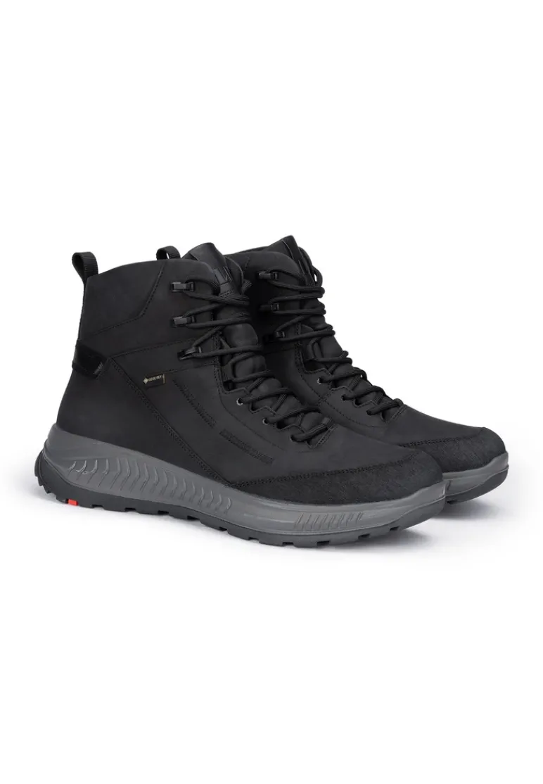 The LLOYD lace-up shoes designed with black rough leather feature an all around waterproof and extremely breathable GORE-TEX membrane suited for any weather. In these men’s lace-up shoes, a secure fit through lace fastening is a given. The wear-resistant rubber sole cushions the impact when walking perfectly. On top of that, the synthetic of the inner sole provides lightness in wear. A firm, secure grip as well as a modern, high-quality look are guaranteed by the stylish leather upper and the laces. By use of the wool lining these shoes are insulated and warm and also snug during cold days. With the GORE-TEX technology, the model is temperated comfortably guaranteeing a pleasant foot climate.