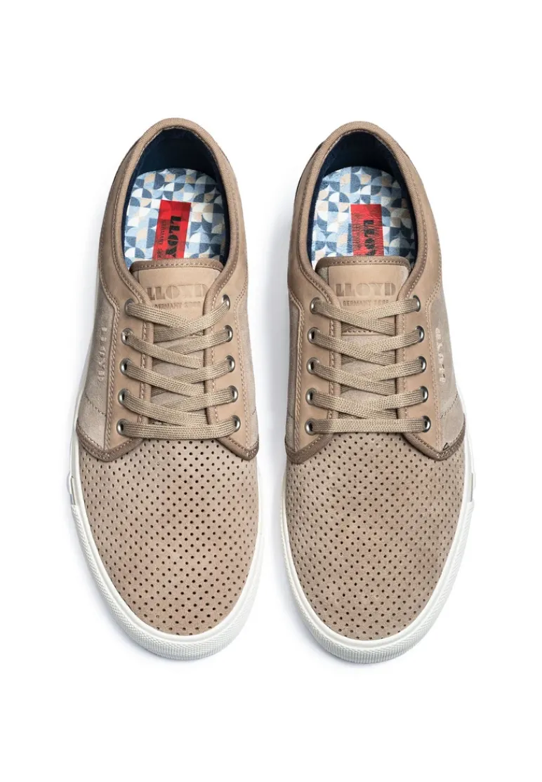The LLOYD »ETHAN« trainers crafted from beige rough leather feature a pleasant wearing comfort. The shoes are ideal for a straightforward look. A flexible rubber sole cushions the impact when walking. A firm, secure grip and a modern, high-quality appearance are guaranteed with the stylish leather upper and the laces. Thanks to the microfiber lining these shoes are breathable. The model has a Variofootbed that is perfectly suited for the use of inlays due to the removable insole.
