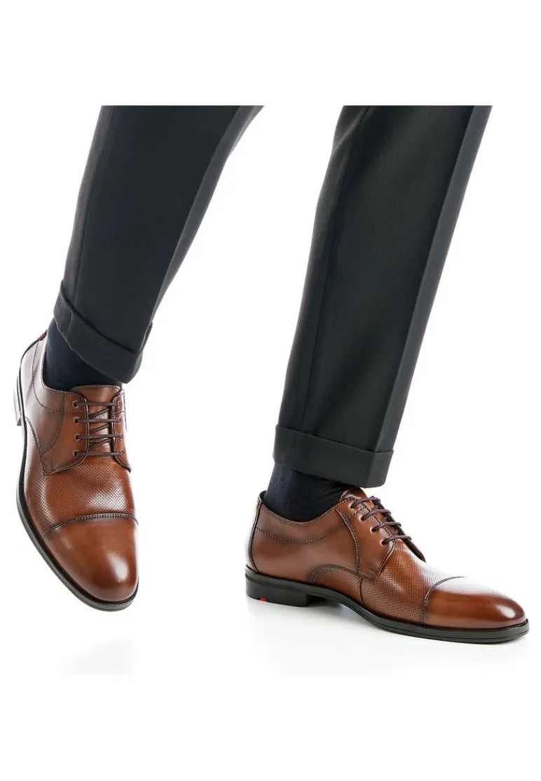 Stand out with the LLOYD lace-up derby shoes »FOLCO« made from smooth leather and a sporty design. A classic and elegant look is guaranteed in these shoes. A wear-resistant rubber sole is used. This cushions the impact when walking while the leather lining of the inner sole offers good heat regulation. The laces as well as the stylish leather upper ensure a modern, high-quality appearance and a firm, secure grip. These leather and textile lined men’s shoes are comfortable and breathable.
