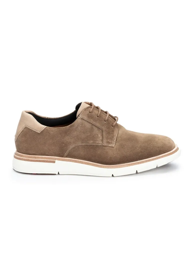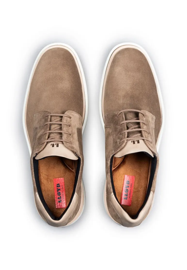 The LLOYD GOODMAN is a stylish derby lace-up shoe for men that impresses with its attractive suede and smooth leather upper. The practical lacing allows individual adjustment for optimum comfort. With an elegant brown color, this shoe blends harmoniously into a variety of leisure outfits. The lining consists of an appealing combination of 60% leather and 40% textile and ensures a comfortable feel. The removable insole is made of high-quality microfibre and allows for a personalized fit. Thanks to the rubber sole, the GOODMAN not only offers a modern design, but also the necessary durability for everyday use. Discover the perfect balance between style and functionality for every occasion with this model.