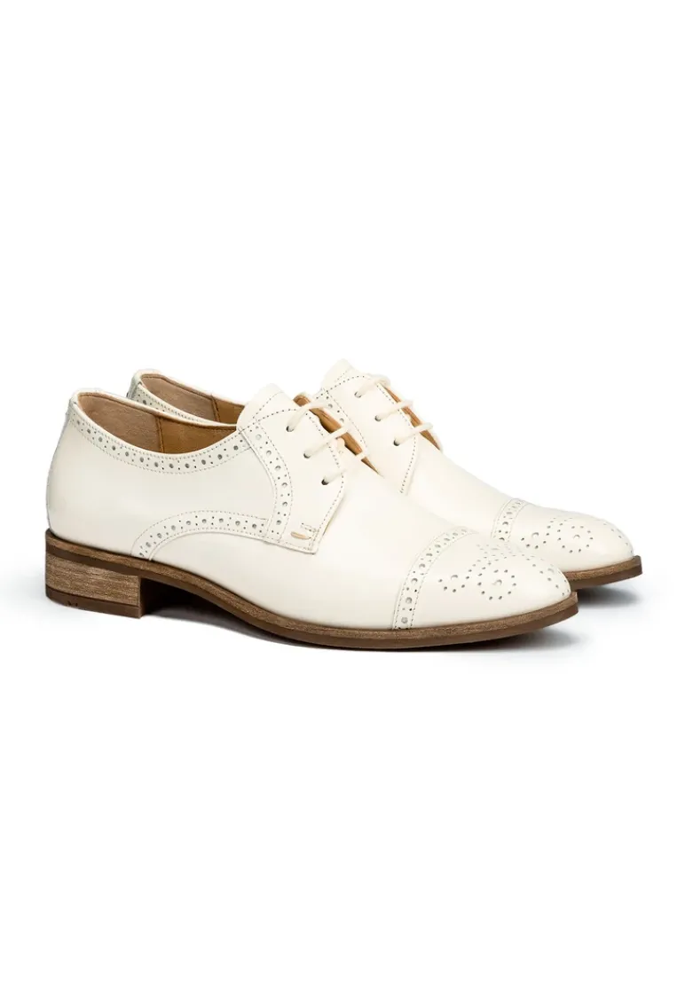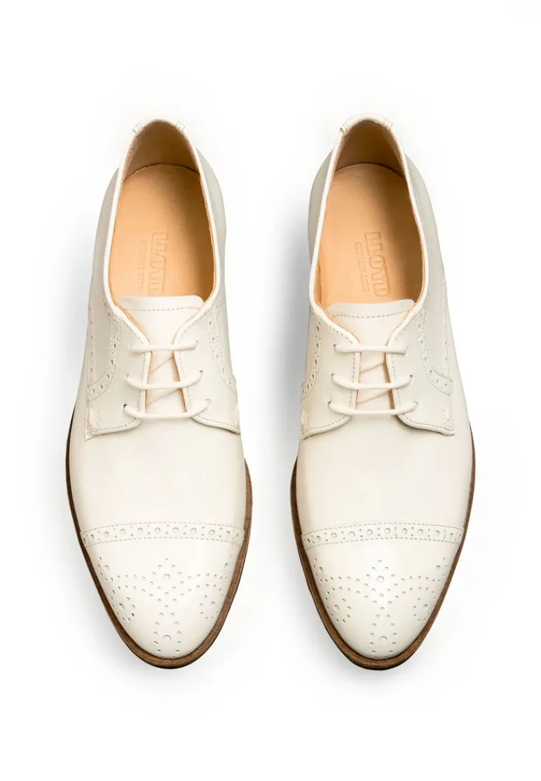 The LLOYD lace-up shoes crafted from white glazed leather feature a noble look. In these women’s shoes, a secure fit with lace fastening is a given. The non-slip rubber sole cushions the impact when walking and the leather of the inner sole contributes to good heat regulation. The pointed toe makes for an extravagant fit and gives an on-trend shape to the feet. Thanks to the low block heel the shoes offer secure footing and permit comfortable everyday wear. The laces as well as the classy glazed leather upper guarantee an elegant look and a firm, secure grip. These shoes are comfortable and breathable by use of the leather and textile lining.