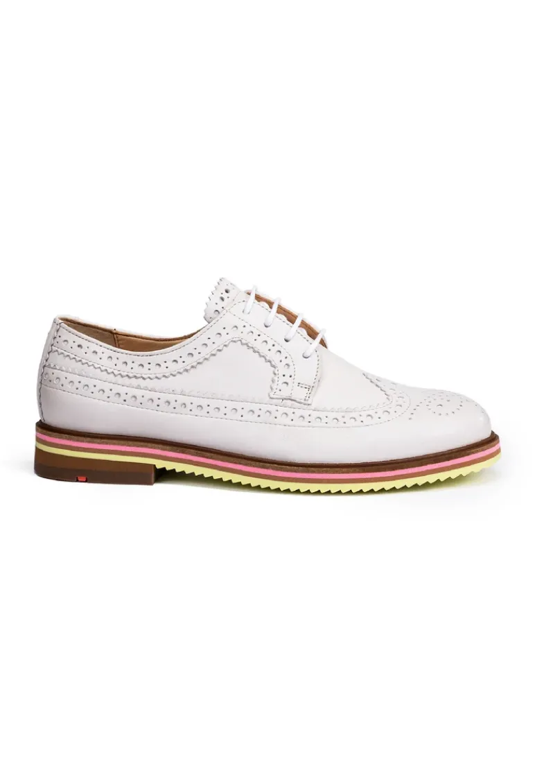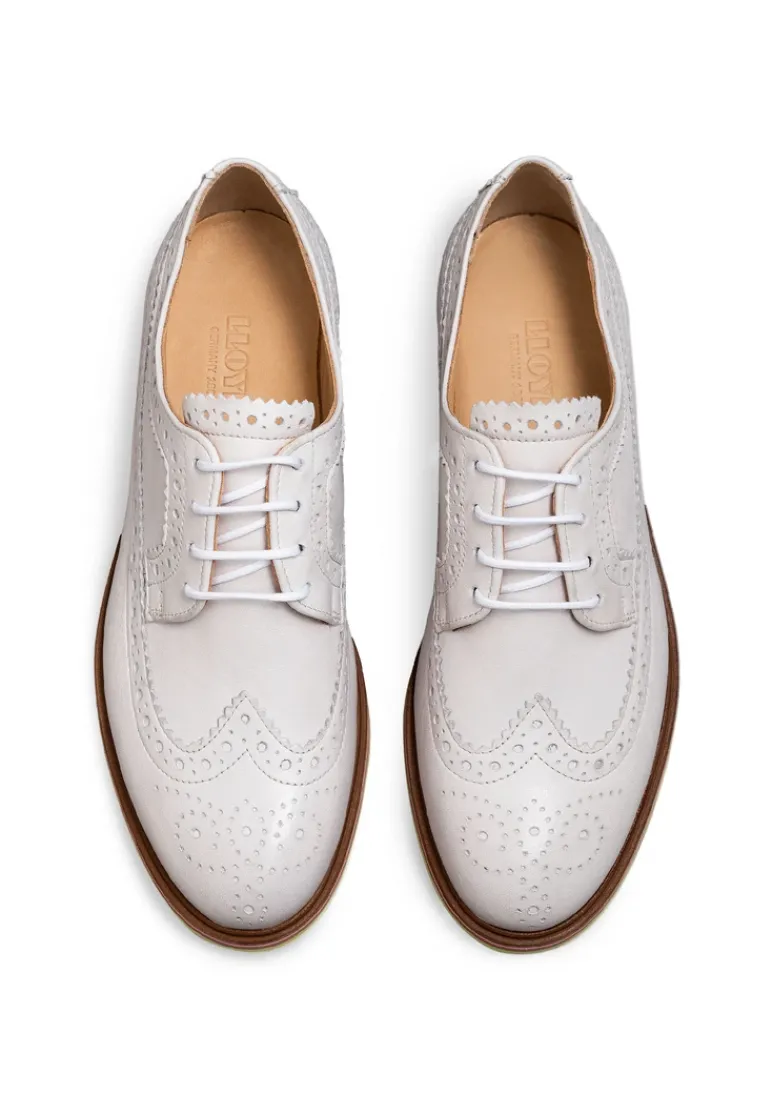 LLOYD presents the lace-up shoes: designed with white smooth leather, the shoes boast a classic design. In these shoes, a classic and elegant look is a given. A flexible rubber sole is utilized. This cushions the impact when walking while the leather of the inner sole offers good heat regulation. The shoes offer secure footing and permit comfortable daily wear through the low block heel. The low shoes’ soft smooth leather upper and laces guarantee a classic, elegant appearance and a firm, secure grip. These shoes are comfortable and breathable by use of the leather and textile lining.