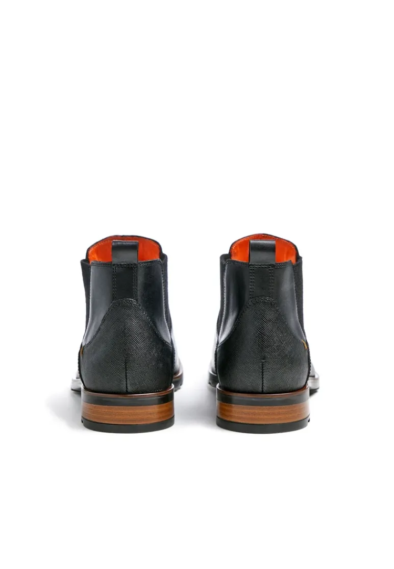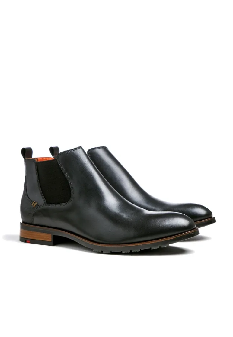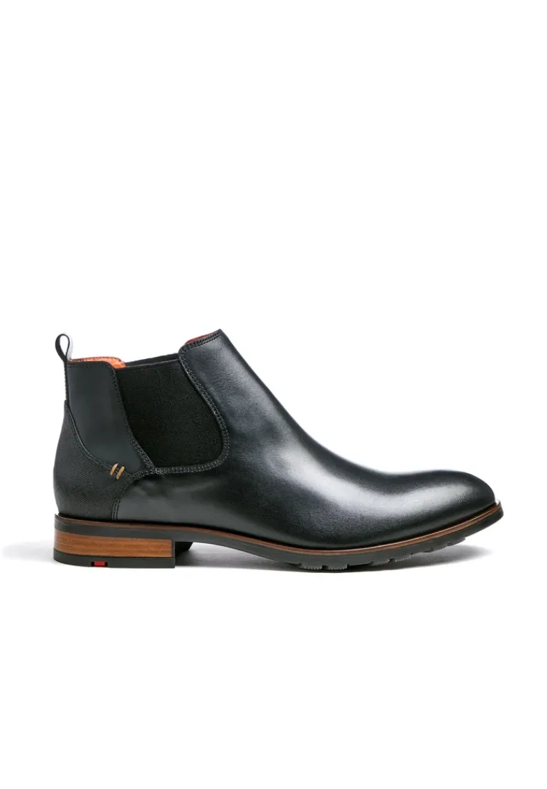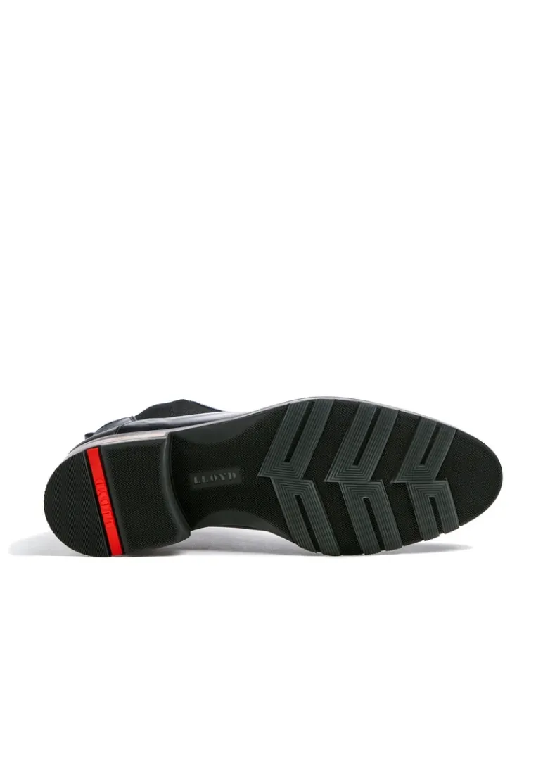 LLOYD presents the »JONAH« Chelsea boots: made with black smooth leather, the shoes boast a classic design. A range of outfit combinations as well as easy slipping-into is guaranteed in these men’s ankle boots. The flexible rubber sole cushions the impact when walking and the leather of the inner sole provides optimal heat regulation. The elasticated band as well as the soft smooth leather upper guarantee a classic, elegant look and easy putting on and taking off. These leather and textile lined shoes are comfortable and breathable.