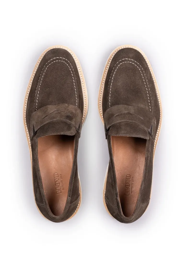 The LLOYD JUSTIN slip-on shoe impresses with its timeless design and the use of high-quality suede in an appealing brown shade. With a practical slip-on fastening, the shoe is easy to slip on and adds a casual look to your leisure wardrobe. The rubber sole completes the overall look and offers an appealing grip. The inner lining is made entirely of leather, which makes them comfortable to wear. The round toe emphasizes the classic silhouette while ensuring a comfortable feel underfoot. Suitable for men, this type of shoe combines functionality and style and is ideal for relaxed days. The JUSTIN loafer from LLOYD is the perfect choice for fashion-conscious men who value design and detail.