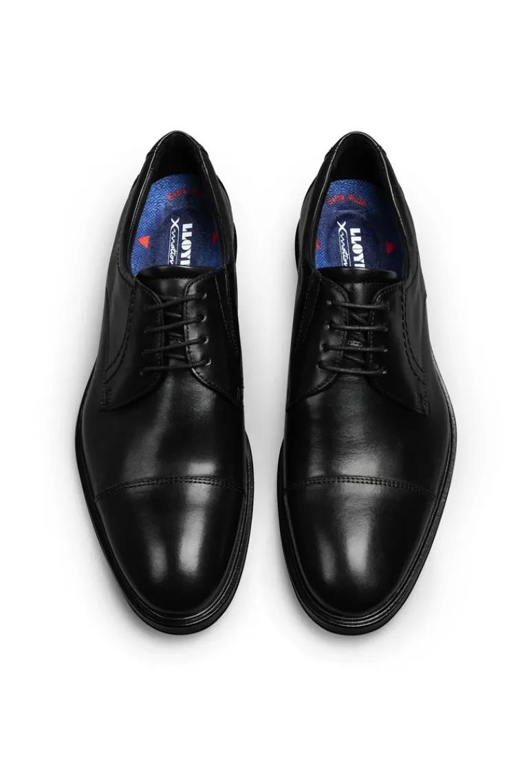 LLOYD presents the lace-up shoes: made with black smooth leather, the shoes boast an extra-wide fit for wider feet. A secure fit through lace fastening is guaranteed in these men’s lace-up shoes. A non-slip rubber sole cushions the impact when walking. With the low block heel the shoes offer secure footing and permit comfortable everyday wear. The laces as well as the soft smooth leather upper guarantee a classic, elegant appearance and a firm, secure grip. These leather lined shoes are breathable and comfortable. The model has a X-motion technology which is equipped with a running shoe technology. The sole stabilises and is gentle on the joints.