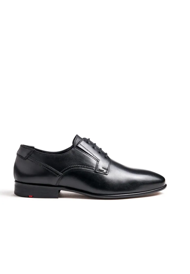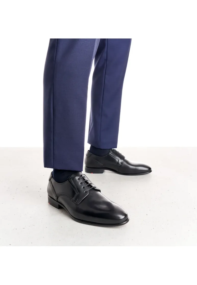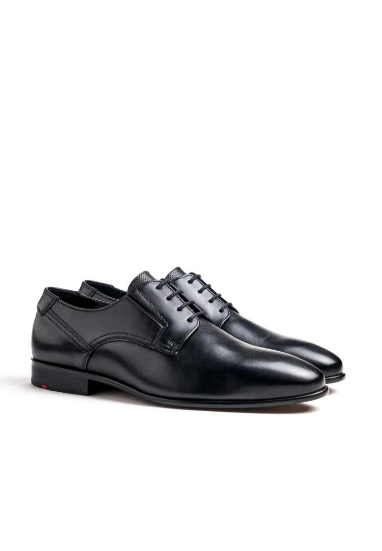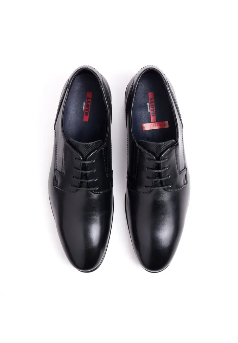 The LLOYD “KEEP” Derby shoes are made of black smooth leather and feature an extra-wide fit for wider feet. A classic and elegant appearance is achieved with this shoe. A good foot climate is created by the breathable leather sole. The synthetic inner sole ensures easy wear. The lacing and the soft smooth leather ensure a pleasant wearing comfort and the perfect fit. The leather-lined shoes are breathable and comfortable.