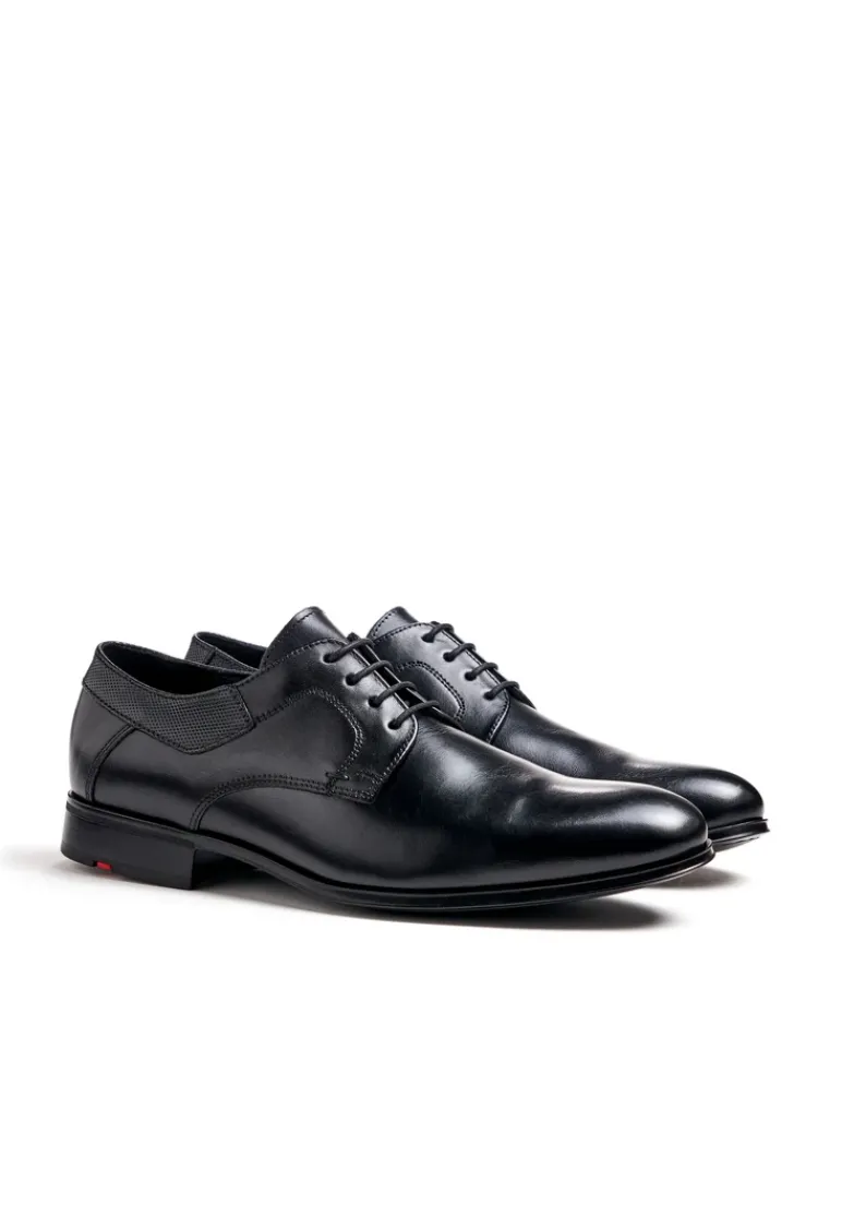 Classic, stylish men’s lace-up shoe with an embossed leather insert on the shank. The flexible rubber sole and the soft smooth leather help make it comfortable to wear. A classic shoe, which optimally complements the stylish look of a suit.