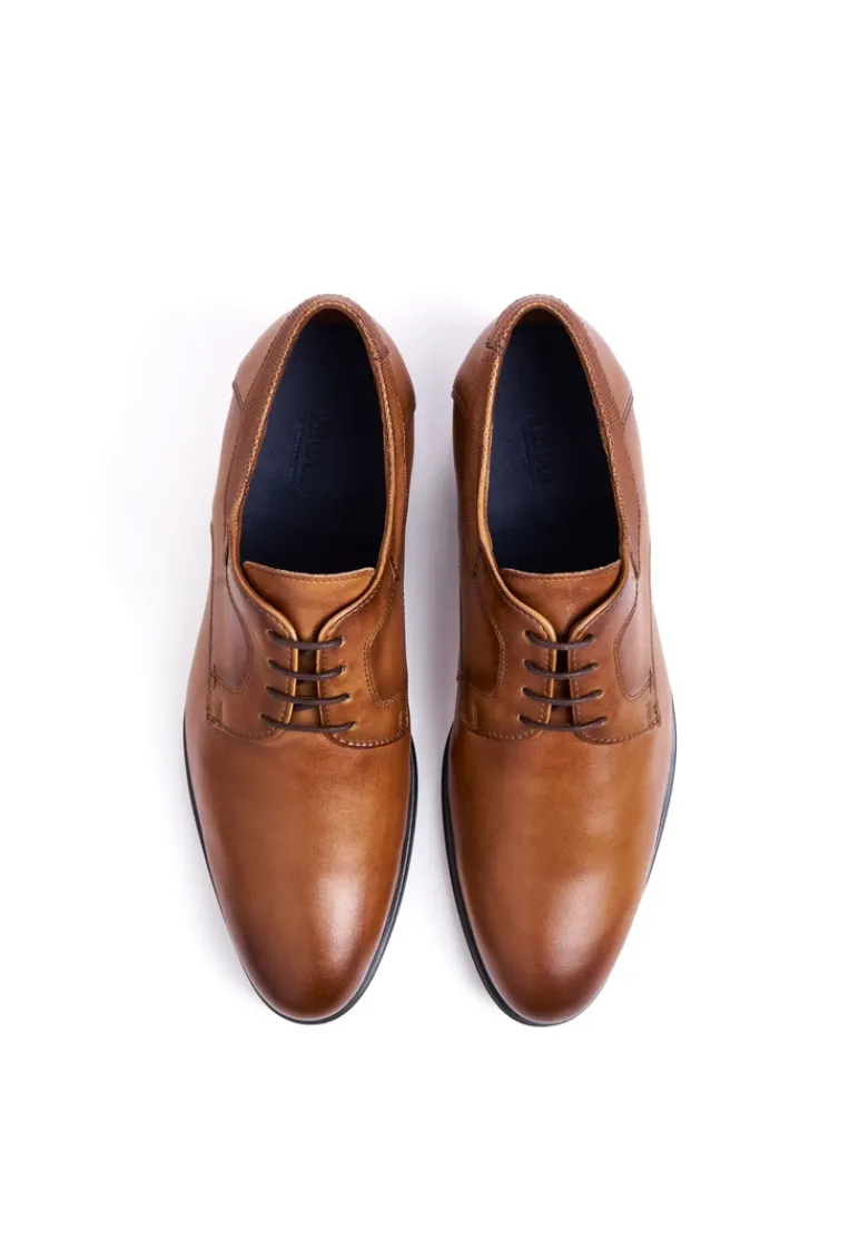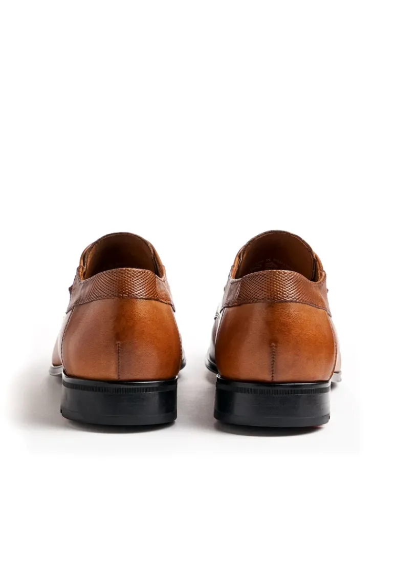 Classic, stylish men’s lace-up shoe with an embossed leather insert on the shank. The flexible rubber sole and the soft smooth leather help make it comfortable to wear. A classic shoe, which optimally complements the stylish look of a suit.