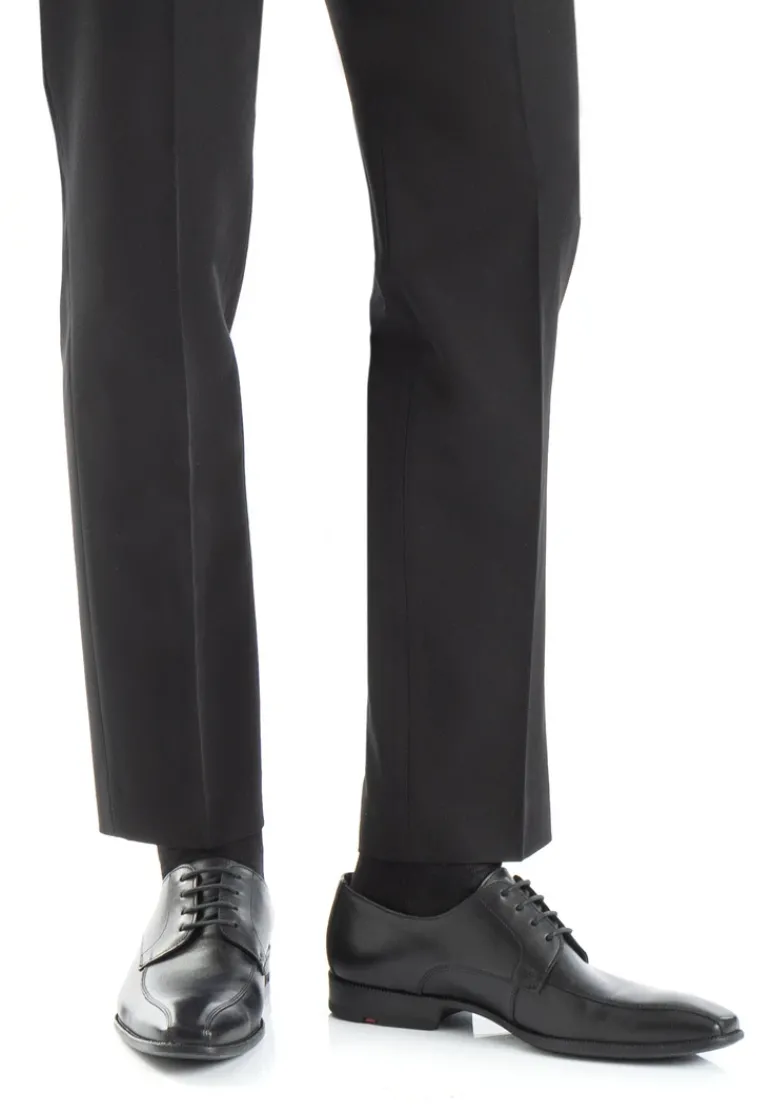 The LLOYD lace-up shoes made with black smooth leather feature a classic design. The men’s lace-up shoes guarantee a classic look combined with an elegant appearance. The non-slip rubber sole cushions the impact when walking and the onSteam/Leder of the inner sole provides good heat regulation. The slim squared toe makes for an elegant fit and creates the appearance of narrow feet. Thanks to the low block heel the shoes offer secure footing and allow comfortable daily wear. The men’s lace-up shoes’ soft smooth leather upper and laces guarantee a classic, elegant look and a firm, secure grip. By use of the leather and textile lining these men’s lace-up shoes are comfortable and breathable.