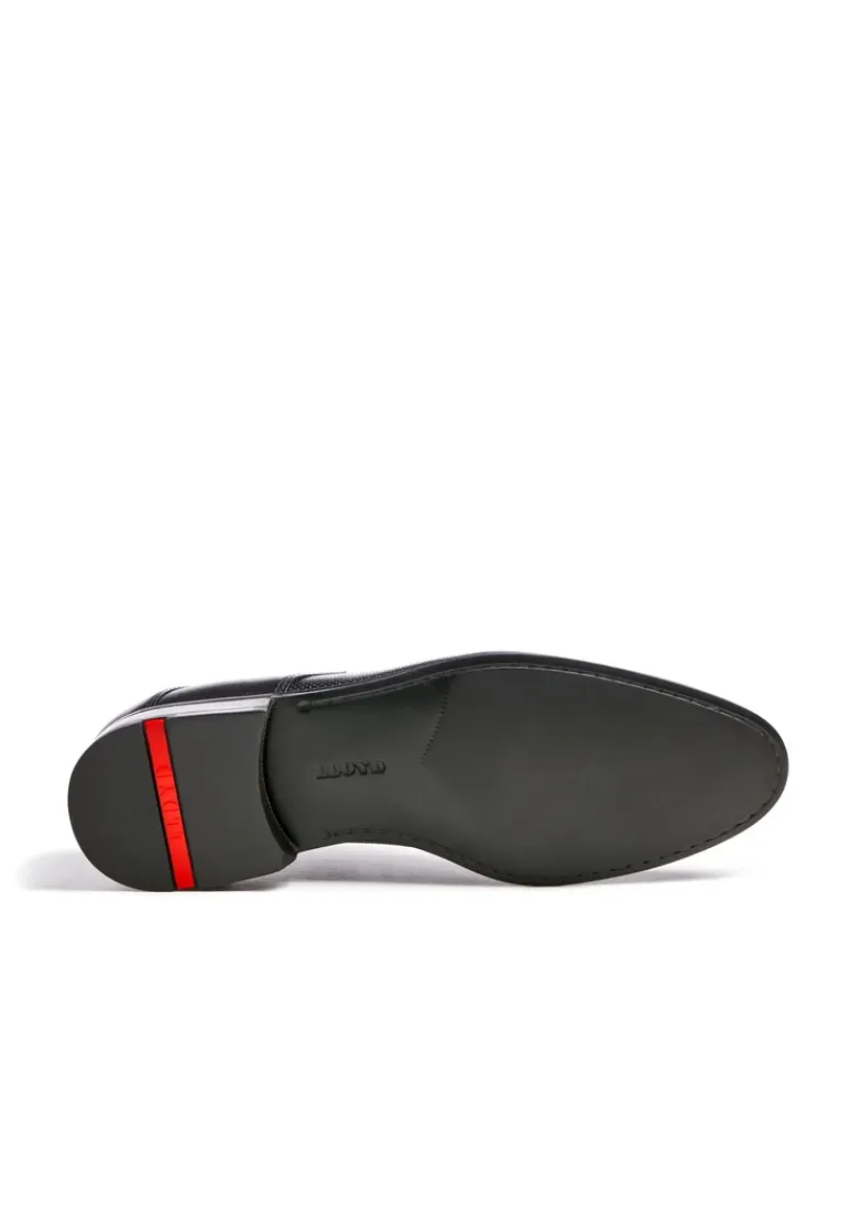 The LLOYD “LEVIN” Derby shoes made of black leather impress with a fashionable style. A classic and elegant appearance is achieved with this lace-up shoe. The abrasion-resistant rubber sole provides ideal cushioning when walking. The leather insole ensures good heat regulation. The lacing and the fashionably embossed leather ensure an original look and the perfect fit. The leather and textile lining makes these lace-up shoes easy to wear and breathable.