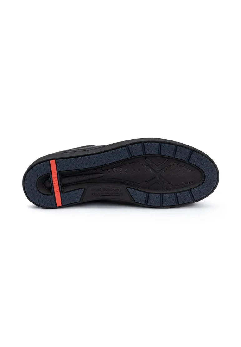 The MADOX trainers combine stylish design with first-class workmanship and are the ideal choice for men who appreciate elegance for both business and leisure. Made from high-quality smooth leather, this low-top shoe comes in classic black and ensures a simple yet powerful appearance. The rubber sole offers an appealing look and the extremely comfortable lining made of 60% leather and 40% textile guarantees pleasant comfort. With a removable insole and the innovative Variofootbed, the MADOX is tailored to individual needs. The lacing offers additional support and enables a precise fit. The overall look is complemented by the round toe, which gives the model a timeless character.