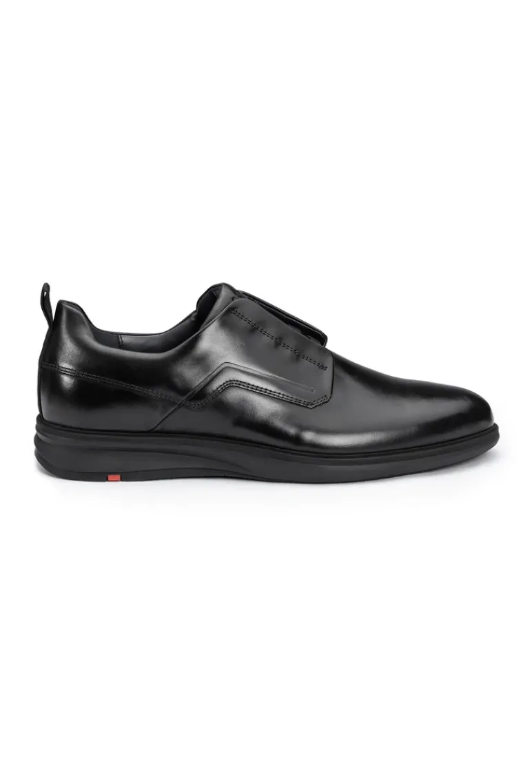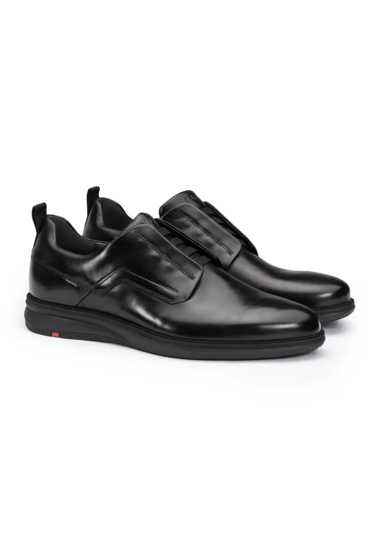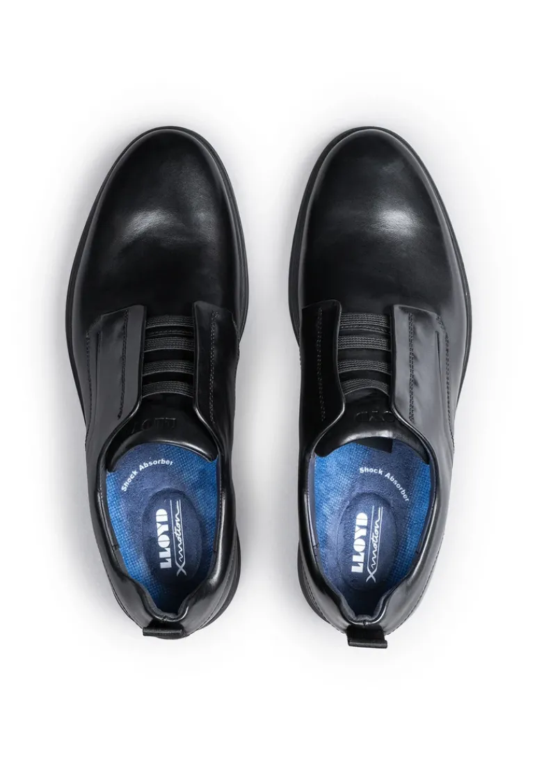 Discover the MARCIO by LLOYD, a stylish derby shoe that switches effortlessly between business and leisure. Made from high-quality smooth leather, it comes in a timeless black that can be combined in a variety of ways. The comfortable slip-on fastening with an elasticated strap makes it easy to slip on, while the round toe ensures a classic look. The 60% leather and 40% textile lining guarantees a comfortable fit. The removable microfiber insole offers individual adjustment options. Complemented by Extralight® technology, the shoe is ideal for modern men. Experience the perfect symbiosis of elegance and functionality – with MARCIO you set new standards in shoe design.