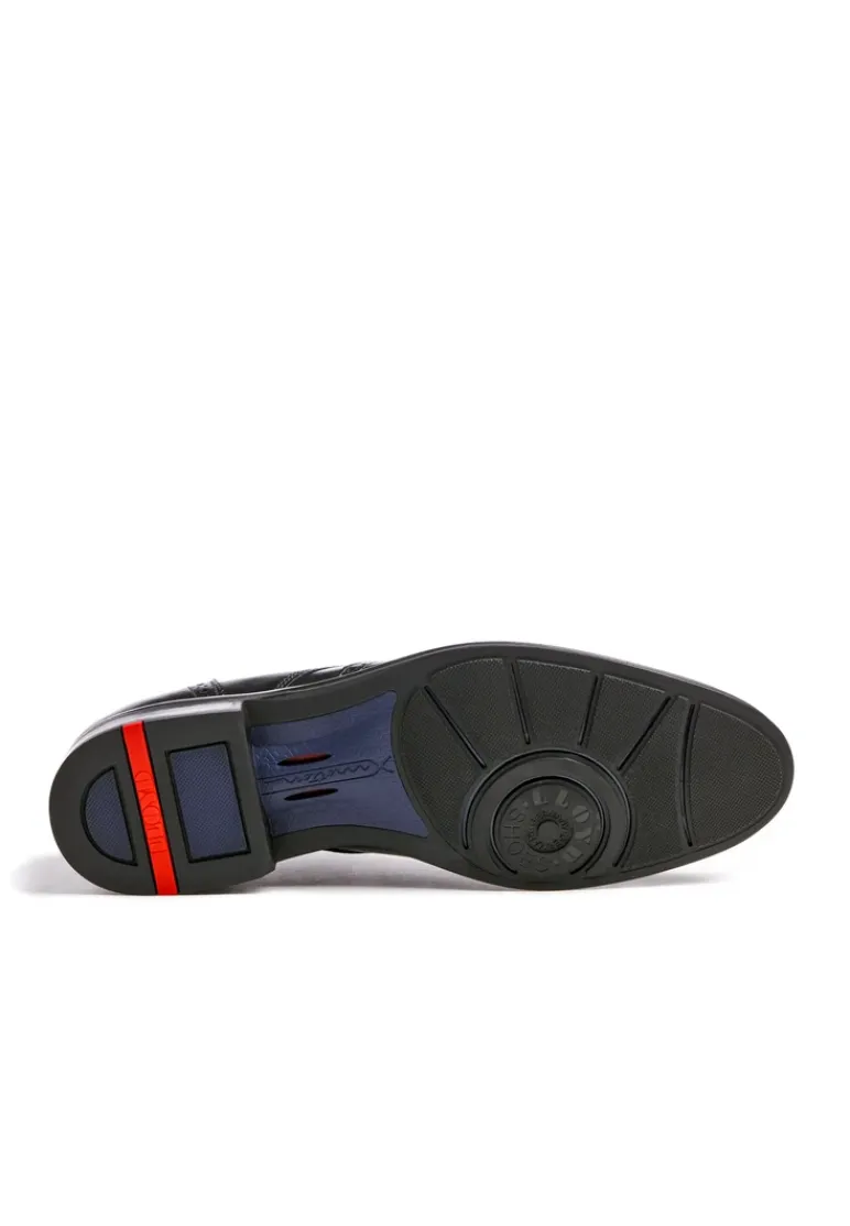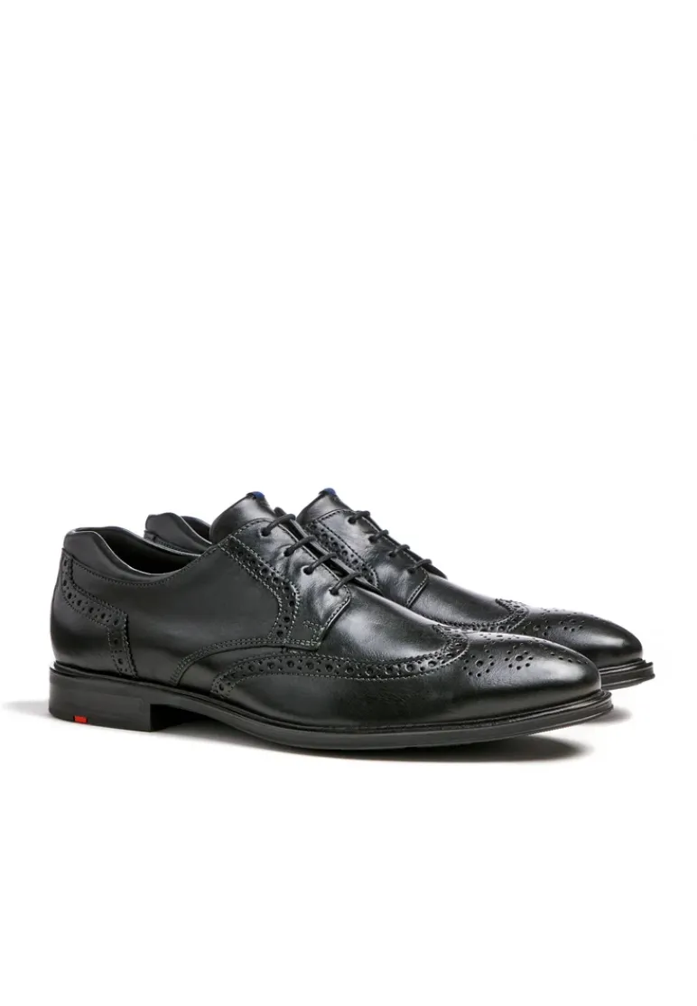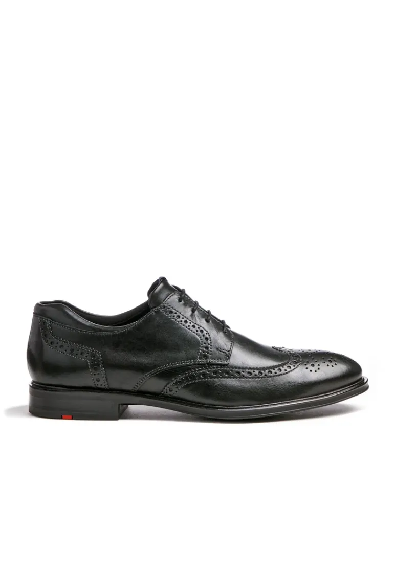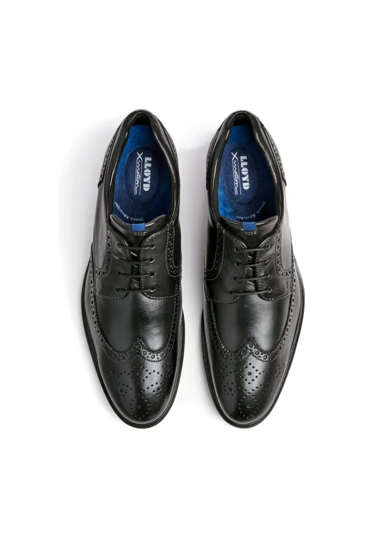 The LLOYD “MARIAN” Derby shoes made of black smooth leather impress with their high-quality style. A classic and elegant appearance is achieved with this shoe. The non-slip rubber sole is ideal for cushioning the foot when walking. The inner synthetic sole also ensures comfort during wear. The lacing and the soft smooth leather ensure a pleasant wearing comfort and the perfect fit. The lace-up shoes are breathable and comfortable thanks to the leather lining. The model has X-Motion technology, ensuring that the joints are stabilised and protected, since it is equipped with running shoe technology.