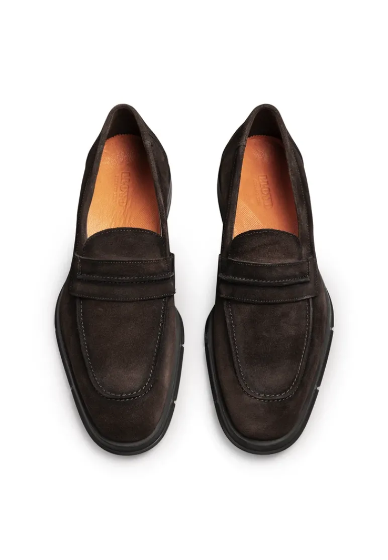 LLOYD presents the slip-ons: made with brown rough leather, the shoes boast an easy-care upper material. Easy handling b…