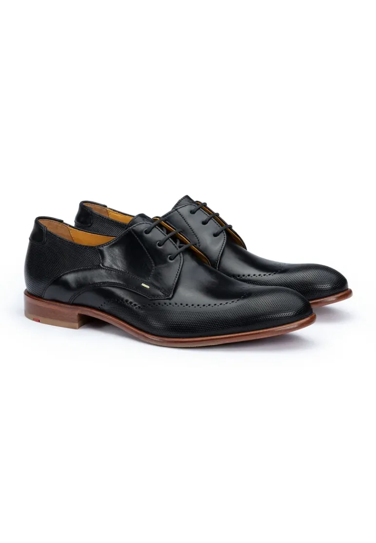The NASSAU derby shoe from LLOYD comes in stylish black and is made from high-quality smooth leather and embossed leathe…