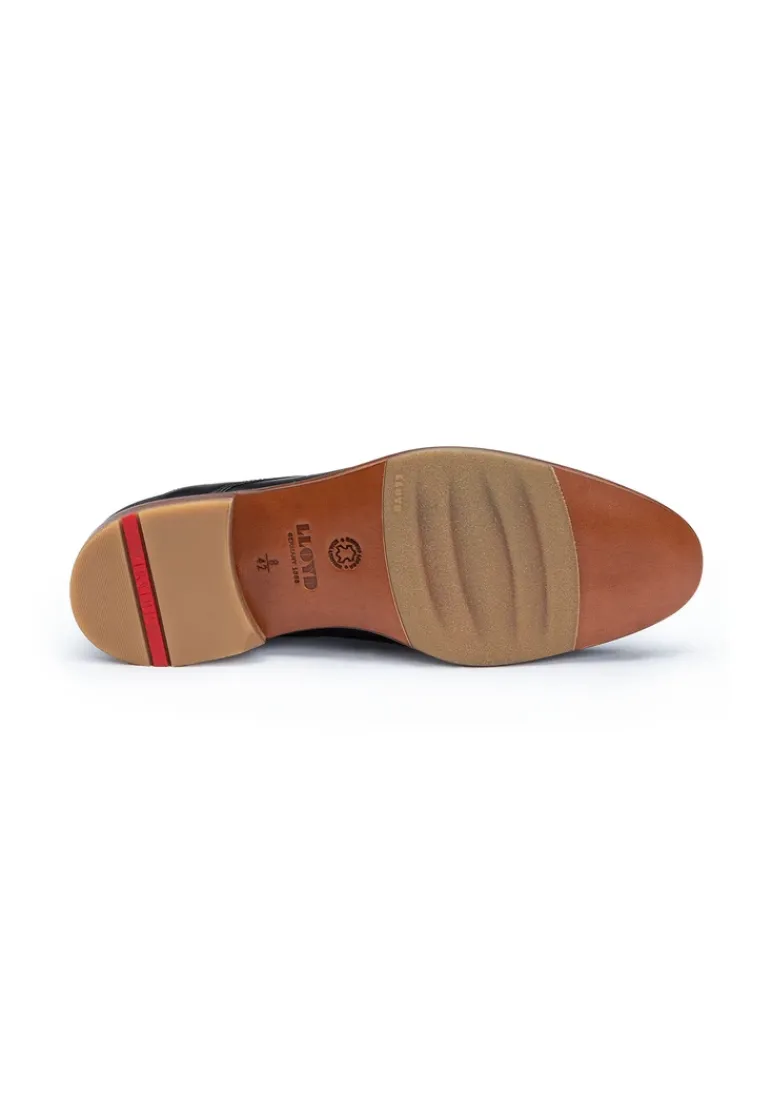 The NASSAU derby shoe from LLOYD comes in stylish black and is made from high-quality smooth leather and embossed leather. With its classic lacing and round toe, it combines timeless design with an elegant appearance. The lining is made of 100% leather and ensures a pleasant feel. The rubber sole completes the shoe, which is ideal for festive occasions or in a business environment. This shoe is the perfect choice for men who value a successful combination of style and comfort. The NASSAU is both a fashion statement and a practical addition to your shoe collection. Discover a timeless style that never goes out of fashion with LLOYD.