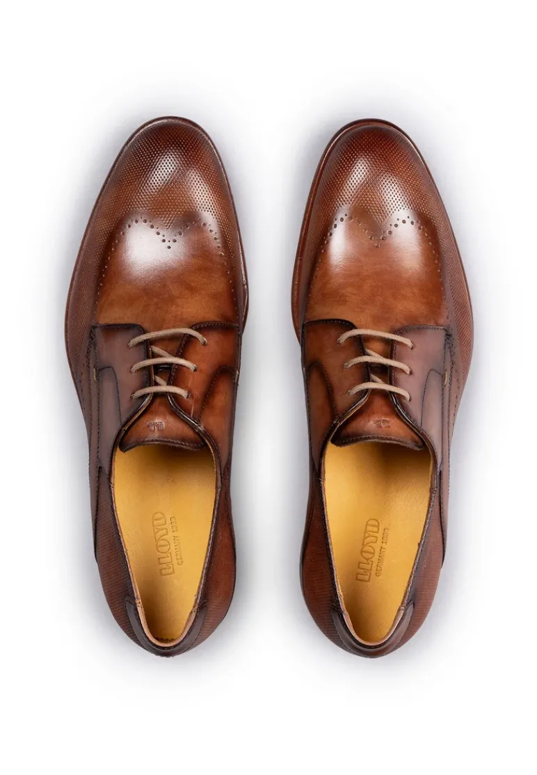 The NASSAU derby shoe from LLOYD comes in stylish brown and is made from high-quality smooth leather and embossed leather. With its classic lacing and round toe, it combines timeless design with an elegant appearance. The lining is made of 100% leather and ensures a pleasant feel. The rubber sole completes the shoe, which is ideal for festive occasions or in a business environment. This shoe is the perfect choice for men who value a successful combination of style and comfort. The NASSAU is both a fashion statement and a practical addition to your shoe collection. Discover a timeless style that never goes out of fashion with LLOYD.