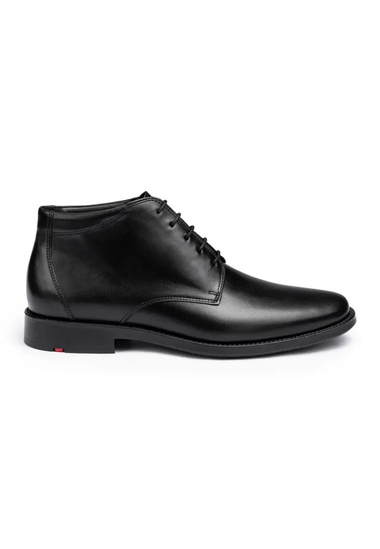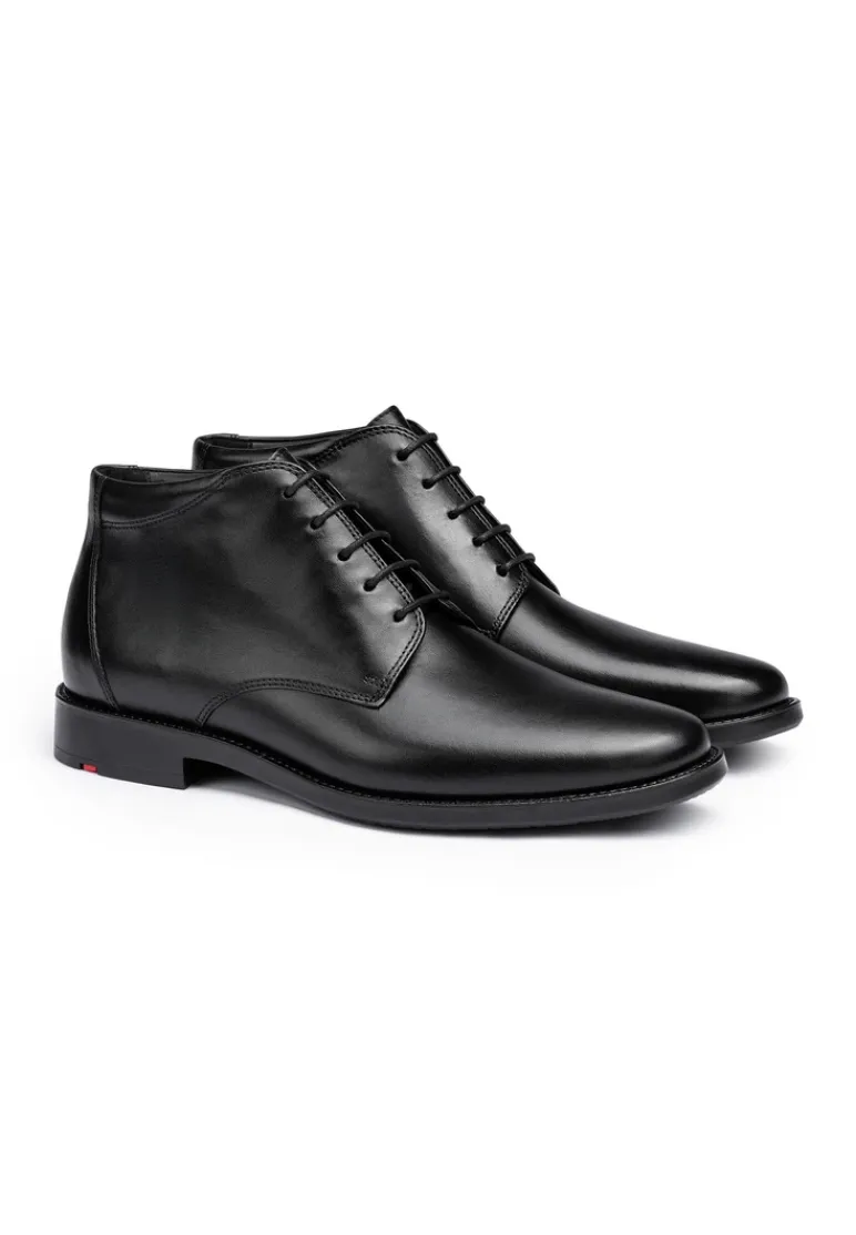 Make a statement with the LLOYD lace-up shoes made from black smooth leather and a fashionable design. The men’s lace-up shoes persuade with a classic and elegant look. The flexible rubber sole cushions the impact when walking and the wool lining of the inner sole provides a warm interior. With the low block heel the shoes offer secure footing and allow comfortable everyday wear. A firm, secure grip as well as a classic, elegant look are guaranteed with the soft smooth leather upper and the laces. These wool lined shoes are insulated as well as snug during cold days.