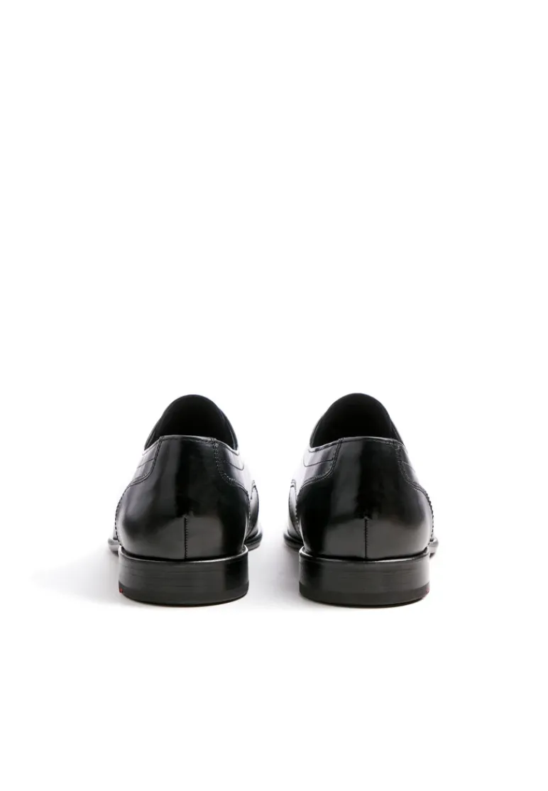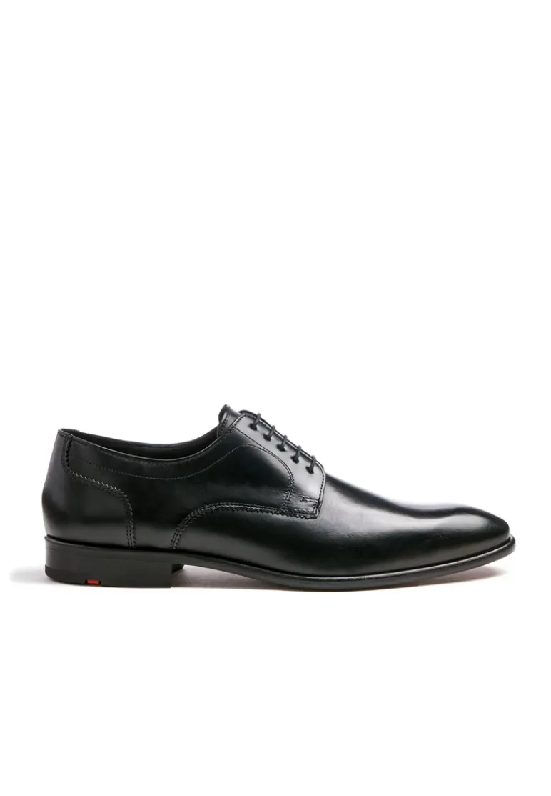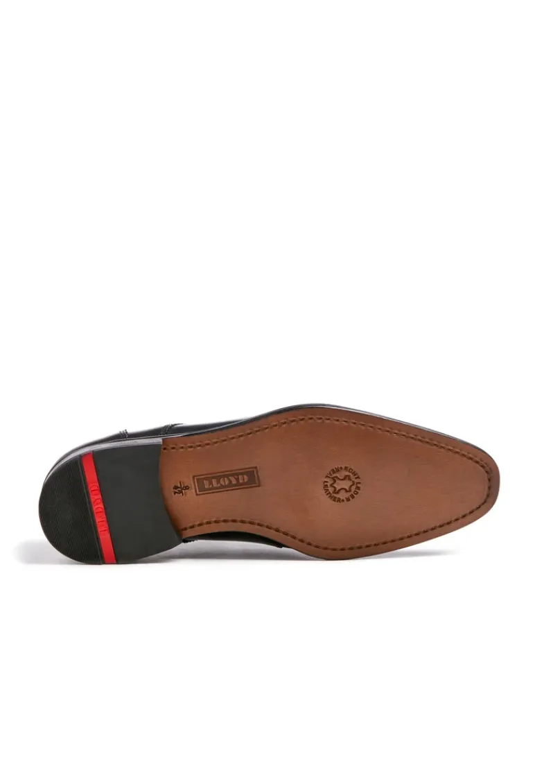 The LLOYD “PADOS” Derby shoes are made of black smooth leather and impress with their high-quality style. The lace-up shoes give a classic and elegant appearance. The slender toe makes the foot look visibly narrower and captivates with a classic look. The breathable leather sole creates a good foot climate, whereas the leather inner sole ensures a high feel-good potential. The lacing and the soft smooth leather ensure a pleasant wearing comfort and the perfect fit. The leather lining makes the lace-up shoes breathable and comfortable.