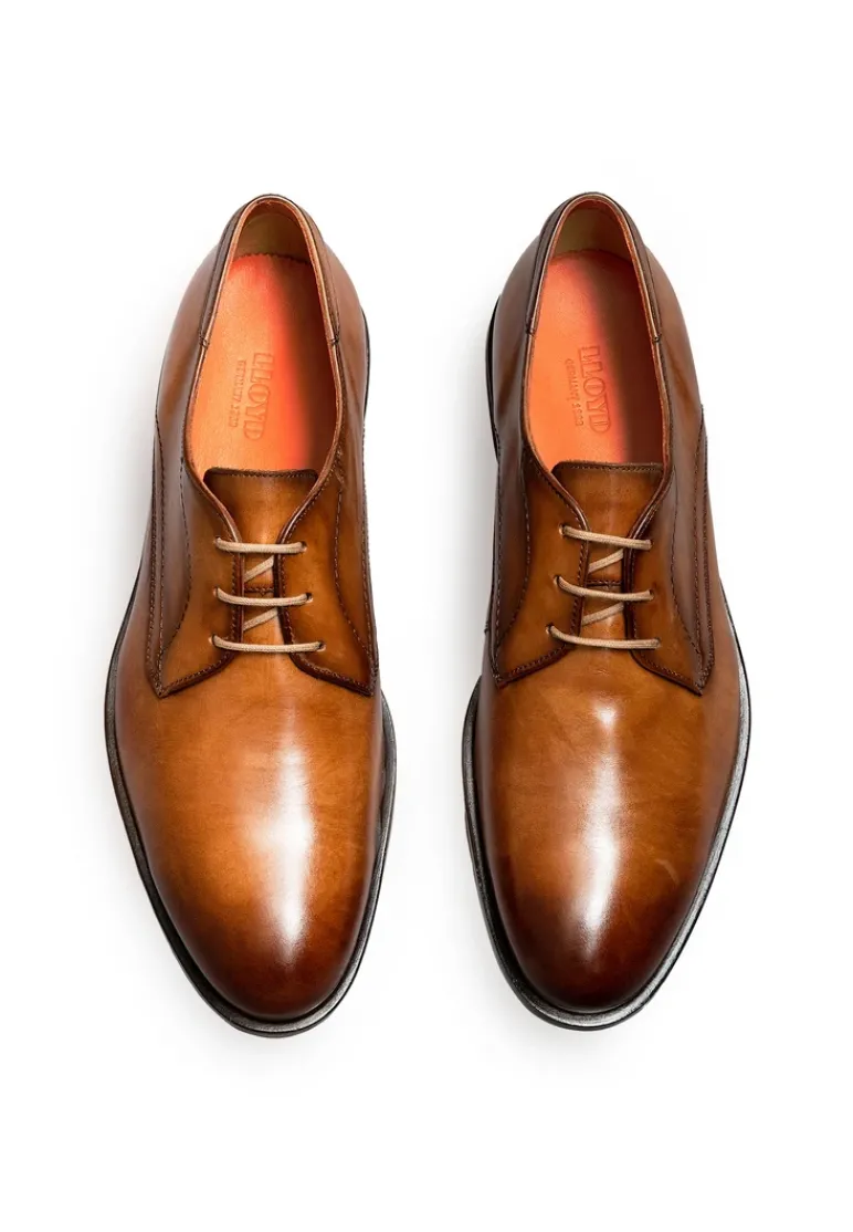 The LLOYD »PARBAT« derby shoes made with brown smooth leather feature a sporty design. The men’s shoes persuade with a secure fit with lace fastening. Their adaptable leather and rubber sole cushions the impact when walking for long wear. Additionally, the leather of the inner sole ensures good heat regulation. A firm, secure grip as well as a classic, elegant appearance are ensured by the soft smooth leather upper and the laces. These lace-up shoes, these men’s lace-up shoes are breathable and comfortable by use of the leather lining.