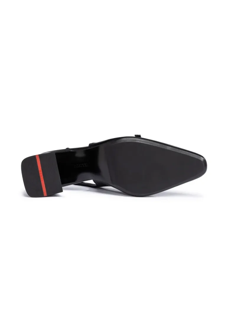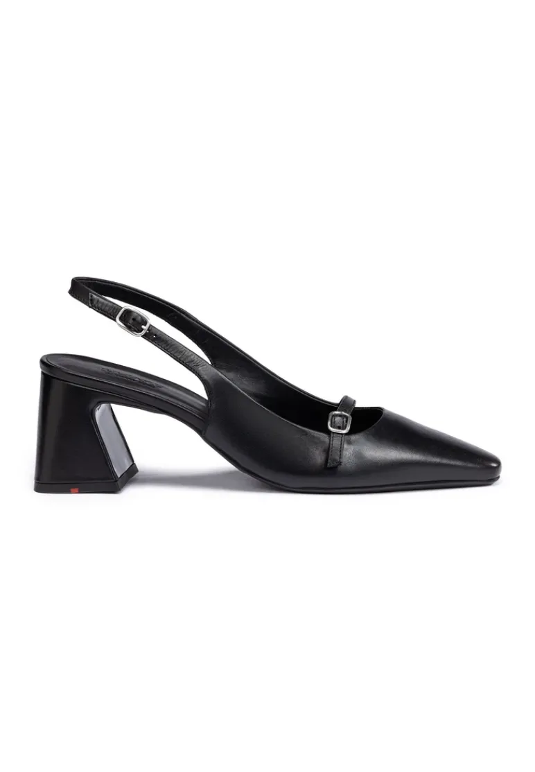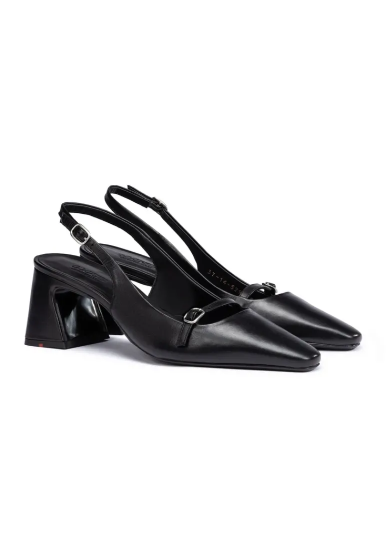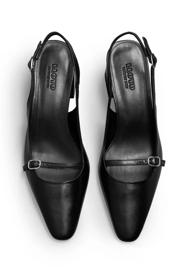 The LLOYD pumps made with black smooth leather feature a classic design. In these pumps, an elegant and feminine look is a given. The non-slip rubber sole cushions the impact when walking and the leather of the inner sole contributes to optimal heat regulation. The extravagant, pointed toe, gives the feet an on-trend shape. Thanks to the low block heel the shoes offer secure footing and permit comfortable daily wear. The elasticated band, buckle fastening as well as the soft smooth leather upper guarantee a classic, elegant look and quick putting on and taking off. These leather lined shoes are breathable and comfortable.