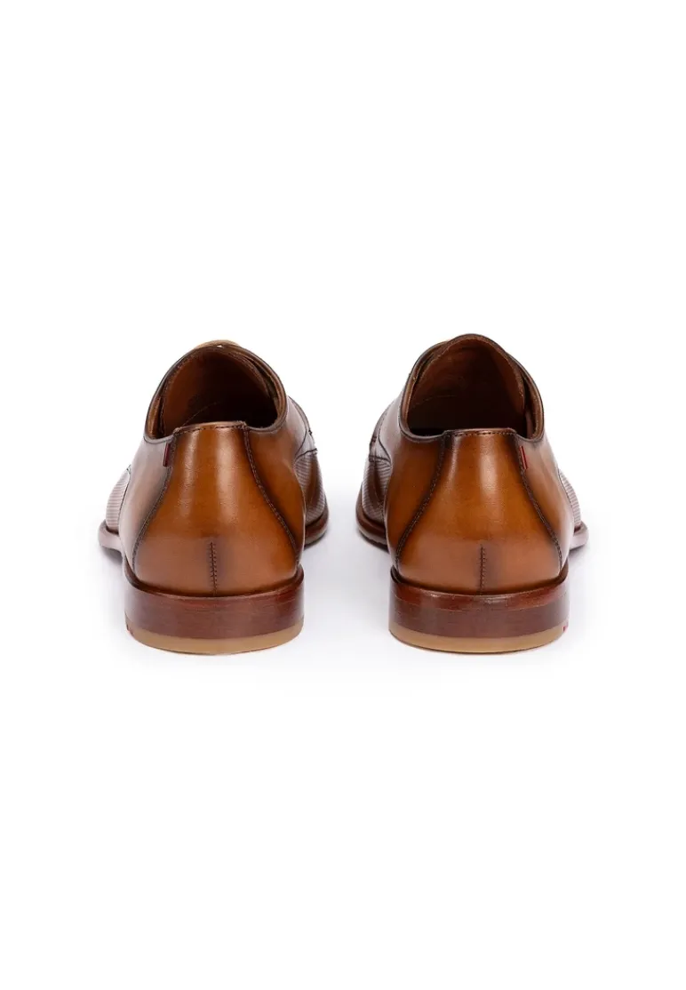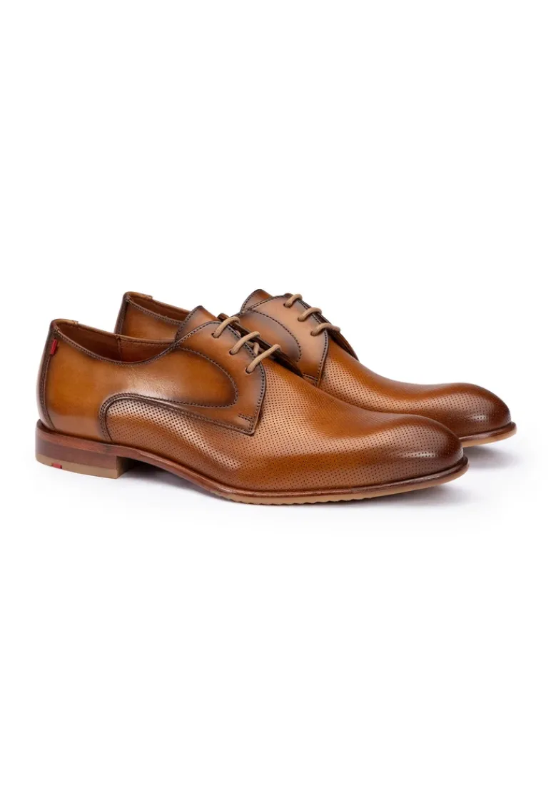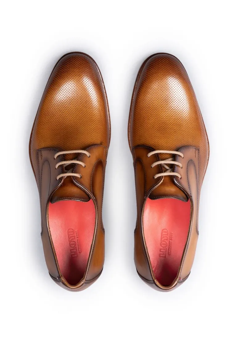The RAPPORT derby shoe from LLOYD impresses with its elegant design made from high-quality smooth leather and embossed leather. The lacing ensures an individual fit and a classic look, ideal for business and festive occasions. The round toe emphasizes the stylish silhouette and conveys timeless elegance. With a leather and rubber sole, this shoe combines comfort and style. The 100% leather lining adds to the elegant look and makes them comfortable to wear. In a classic brown shade, this model blends harmoniously into any men’s shoe collection. The RAPPORT is the perfect choice for the modern man who values a well-groomed appearance.