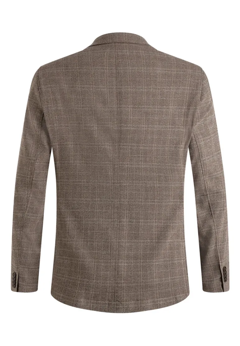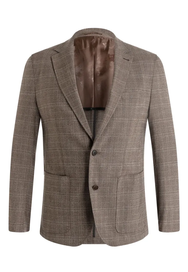 The LLOYD jacket in a modern fit offers you an elegant and contemporary look with maximum comfort. Thanks to the elastane content, the jacket fits snugly to the body and gives you complete freedom of movement. The classic lapel collar and the single-breasted jacket with two buttons give the jacket a stylish touch.nSpecial details such as the characteristic kissing buttons and patch pockets, including a slanted breast pocket, underline the sophisticated design. Two back slits ensure an optimum fit and freedom of movement.nThe jacket has a smooth inner lining that covers half of the sleeves, the back and the front. Two lockable inside pockets also offer you practical storage space for your most important items. This jacket combines stylish design with functionality and is the perfect addition to your wardrobe.