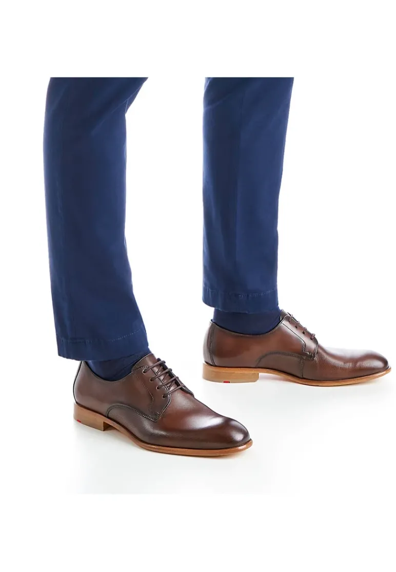 Catch the eye with the LLOYD lace-up derby shoes »SAIGON« made from smooth leather and a fashionable design. The shoes guarantee a secure fit with lace fastening. Their breathable leather sole provides a dry and pleasant foot climate. On top of that, the leather lining of the inner sole provides good heat regulation. The lace-up shoes’ stylish leather upper and laces guarantee a modern, high-quality look and a firm, secure grip. These men’s shoes are comfortable and breathable by use of the leather and textile lining.