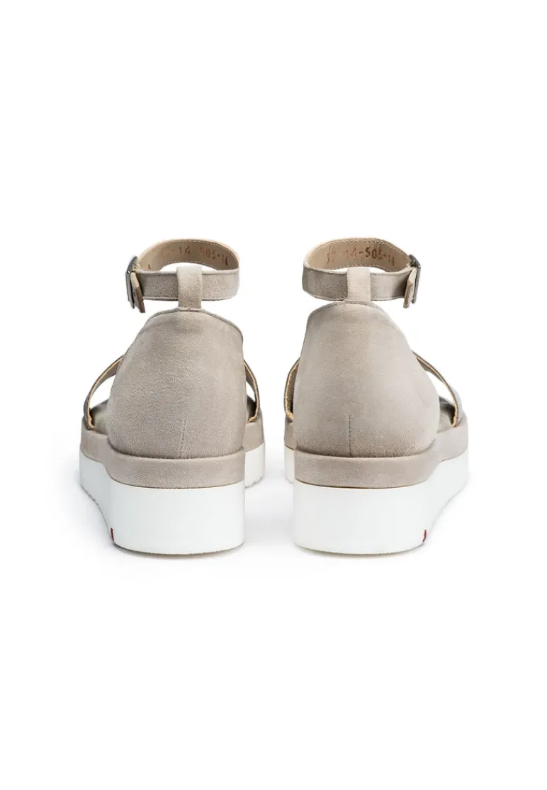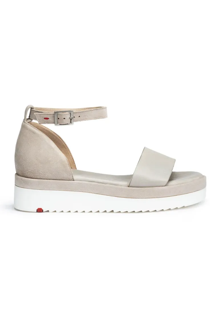 LLOYD presents the sandals: designed with grey smooth leather, the shoes boast an easy-to-clean upper material. The summ…