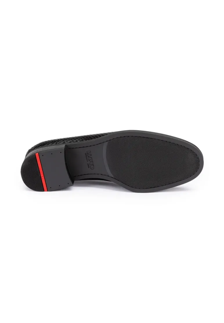 LLOYD presents the slip-ons: made with black leather, the shoes boast an on-trend statement upper material. In these sho…