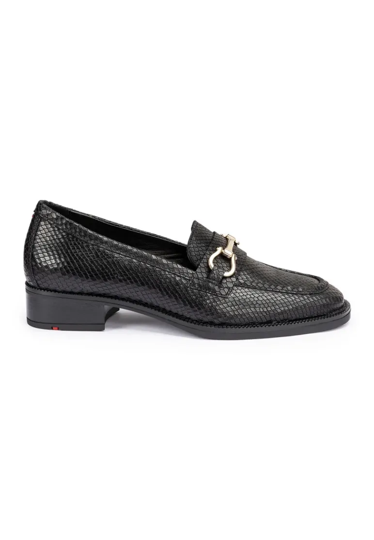 LLOYD presents the slip-ons: made with black leather, the shoes boast an on-trend statement upper material. In these shoes, effortless handling by simply sliding into them is a given. The non-slip rubber sole cushions the impact when walking perfectly. On top of that, the leather of the inner sole ensures good heat regulation. Thanks to the low block heel the shoes offer secure footing and allow comfortable daily wear. The elasticated band and the stylish embossed leather upper guarantee an original look and easy putting on and taking off. These leather and textile lined shoes are comfortable and breathable.