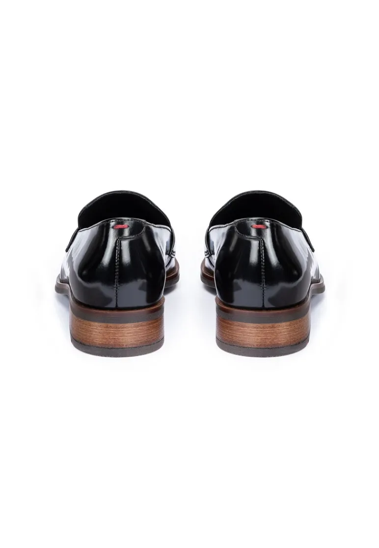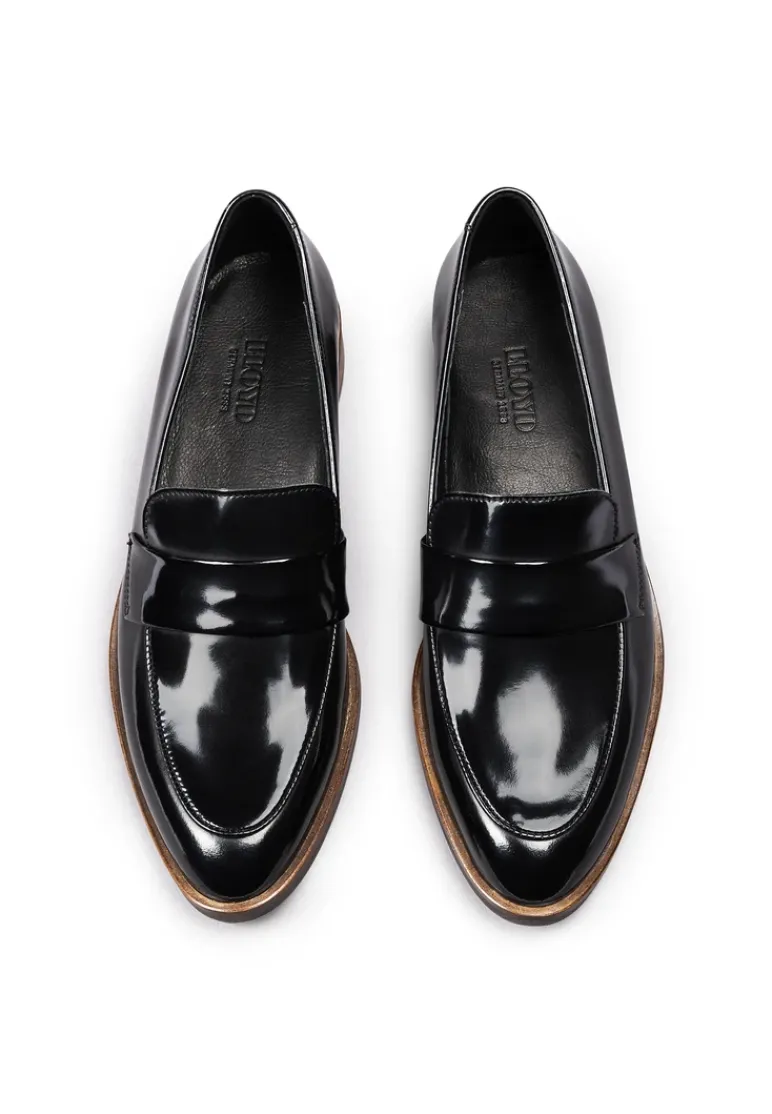 Stand out with the LLOYD slip-ons made from black glazed leather and an elegant finish. Easy handling by simply sliding into them is guaranteed in these shoes. The non-slip rubber sole cushions the impact when walking perfectly. Additionally, the leather of the inner sole ensures optimal heat regulation. The extravagant, pointed toe, gives the feet an on-trend shape. The shoes offer secure footing and allow comfortable everyday wear thanks to the low block heel. Easy putting on and taking off as well as an elegant look are guaranteed by the noble glazed leather upper and the elasticated band. These shoes are comfortable and breathable by use of the leather and textile lining.